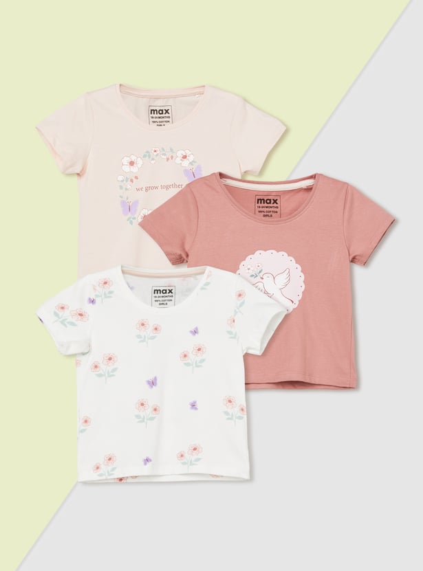 Girls Printed T-shirts - Pack of 3