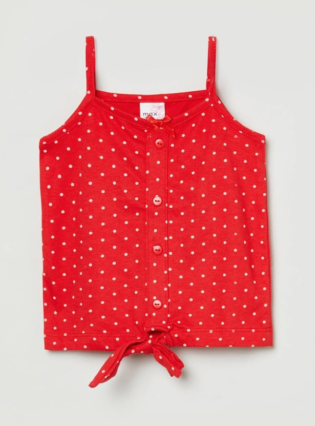 Update your child's wardrobe with this printed top, which is designed with a spaghetti neckline and tie-up waistline.