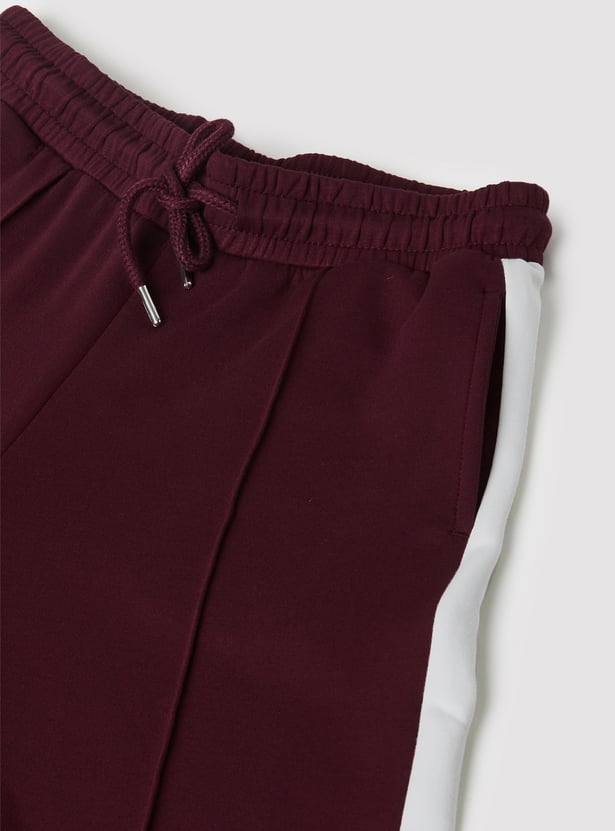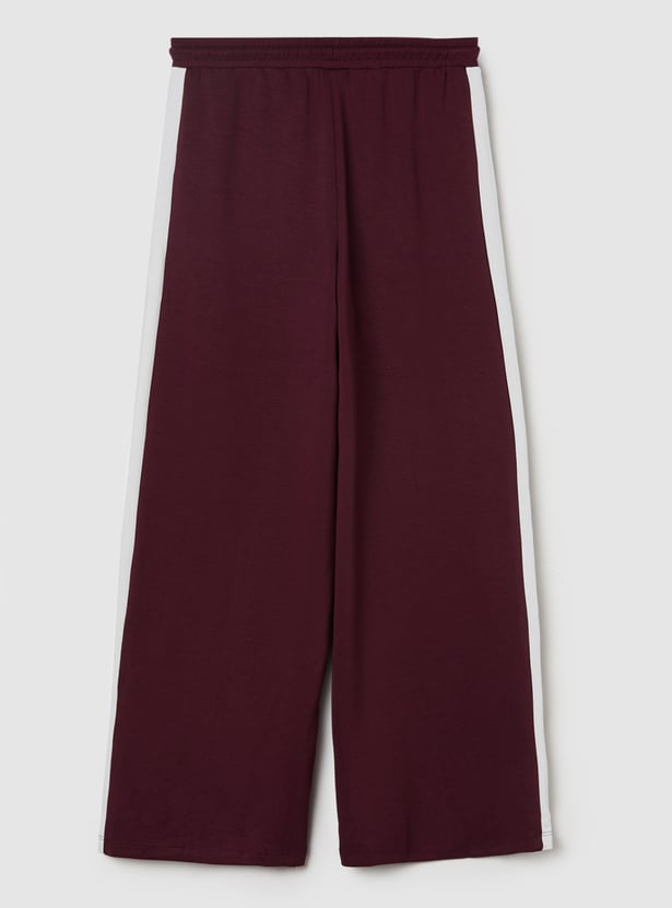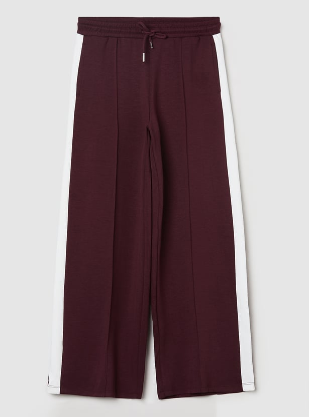 These side taped wide leg trousers bring sporty style and everyday comfort together. Featuring a relaxed fit and drawstring closure, they offer ease of movement with a trendy edge. The contrast side tape adds a bold touch to this laid-back essential.