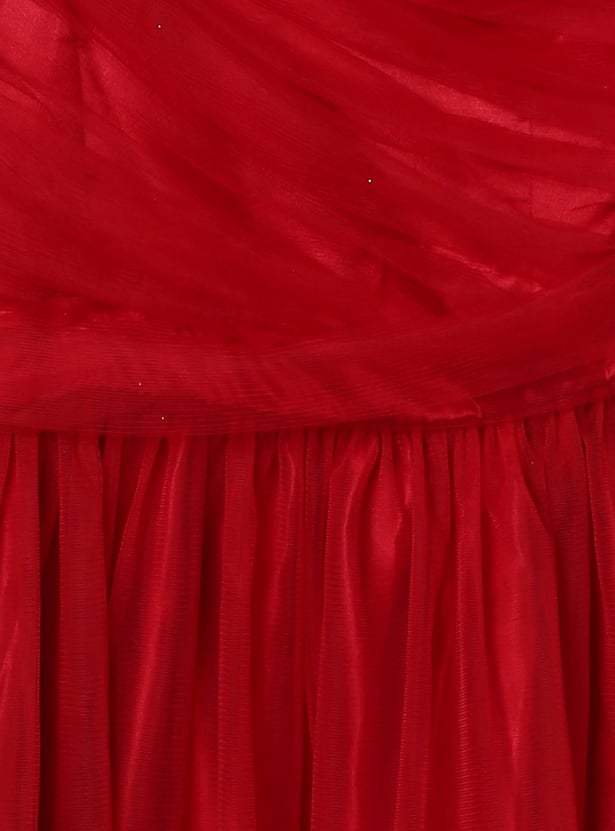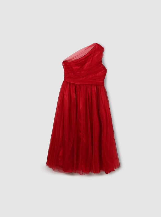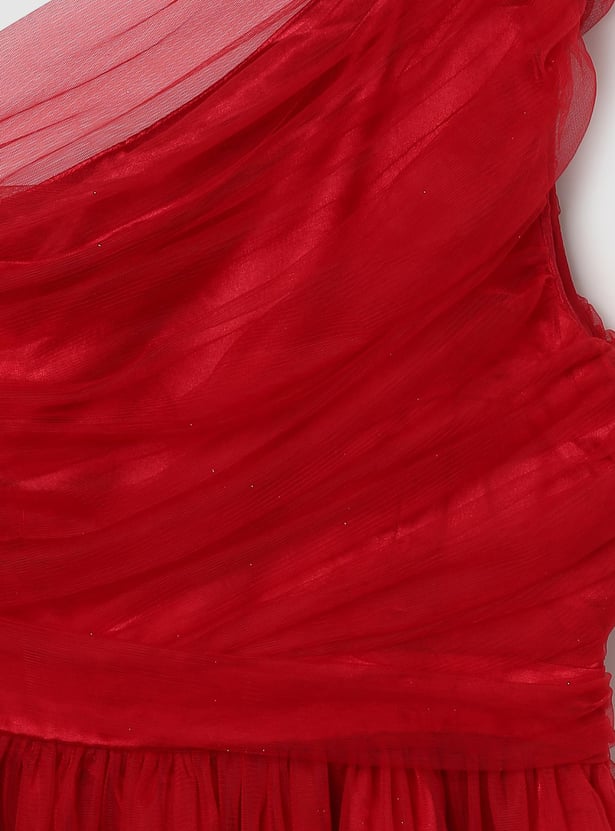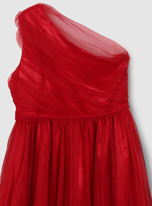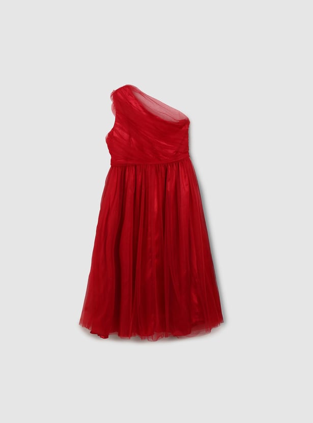 Girls Pleated One-Shoulder Dress