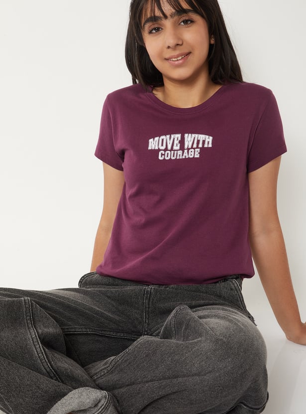 Girls Typographic Printed T-shirt