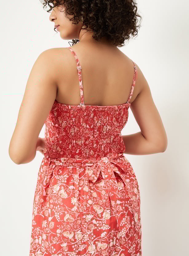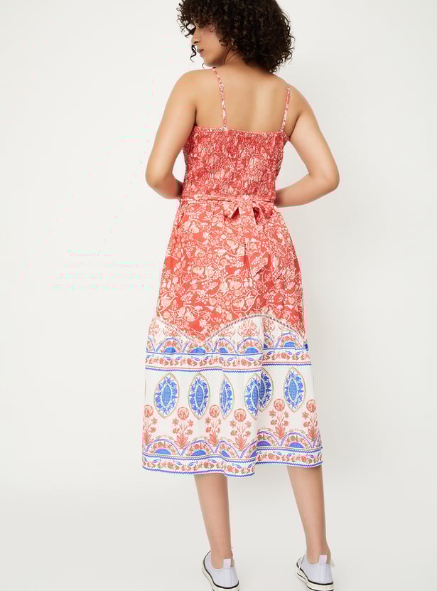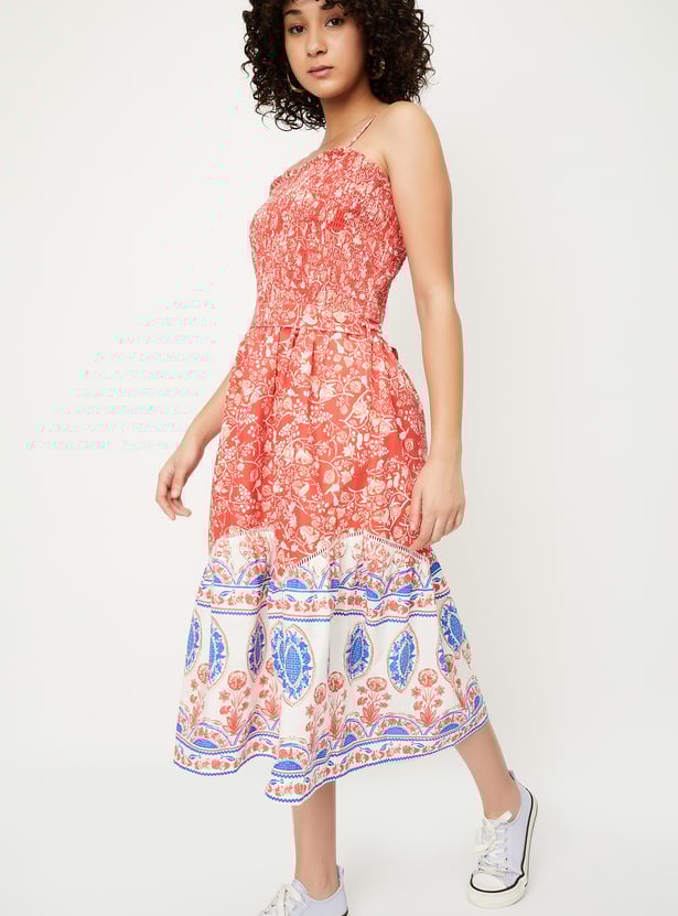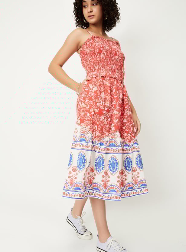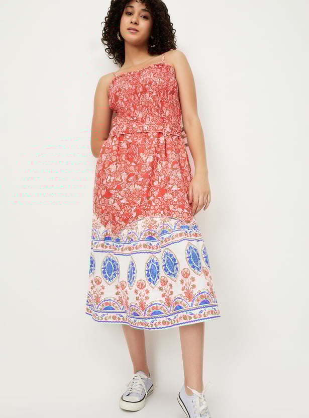 Add a playful touch to your wardrobe with this printed A-line dress, perfect for casual outings or brunch dates. Featuring spaghetti straps, a square neck, and a midi length, it combines comfort with effortless style. The side pocket adds a practical and trendy detail.