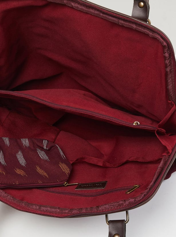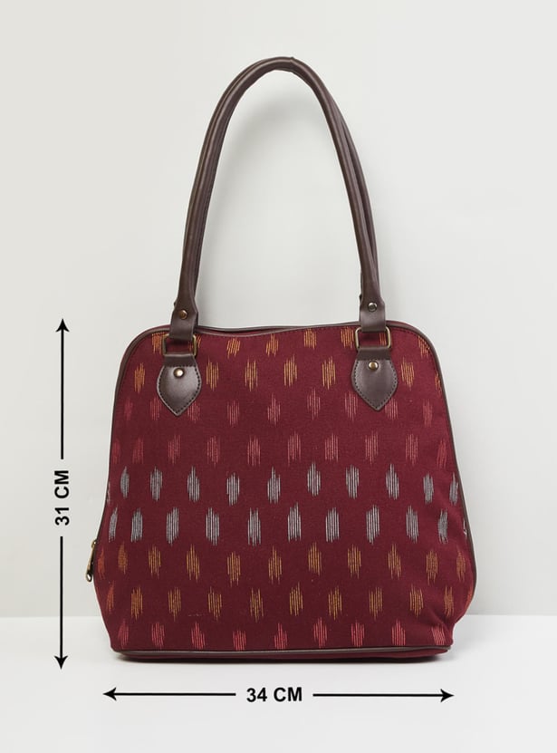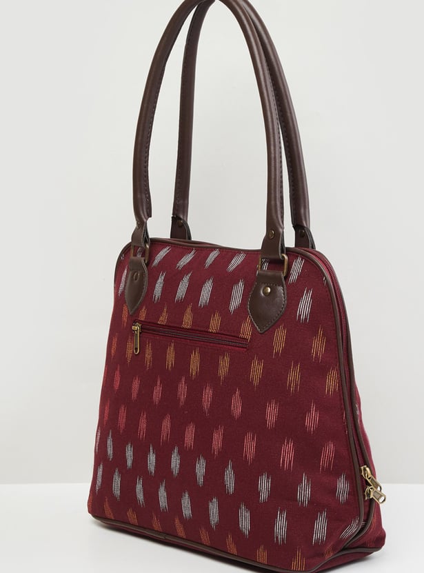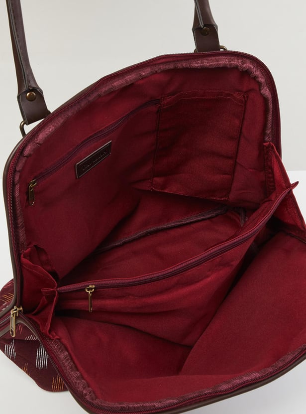 Accessorize your look with this shoulder bag designed with vibrant prints and 2 flat handles. It comes with 2 main compartments divided by a zip pocket. A matching zippered coin purse adds to the functionality.