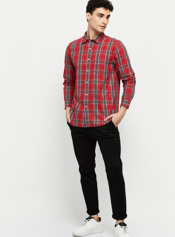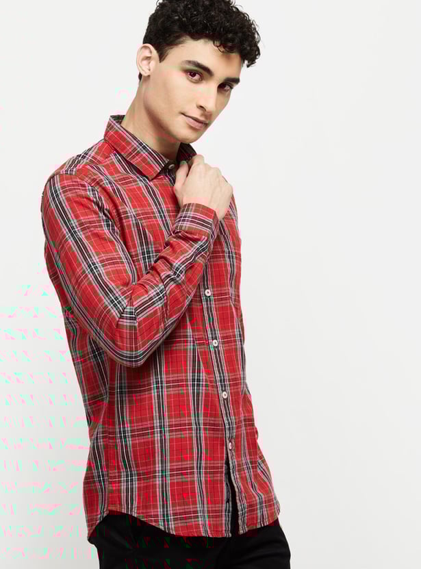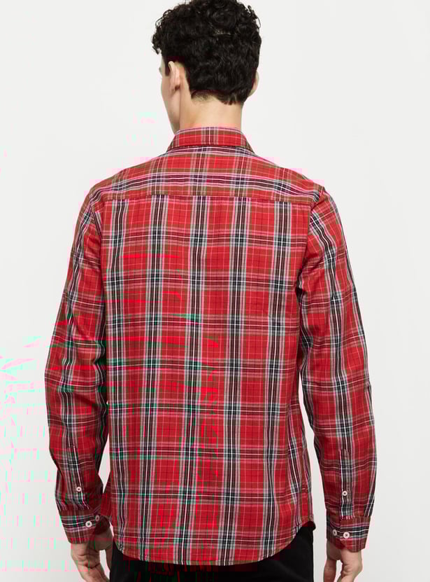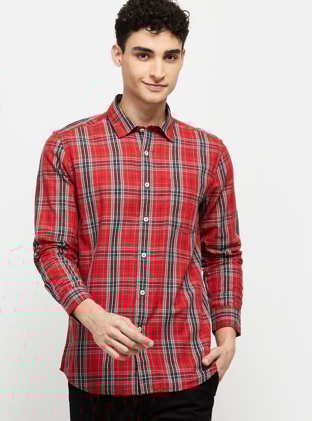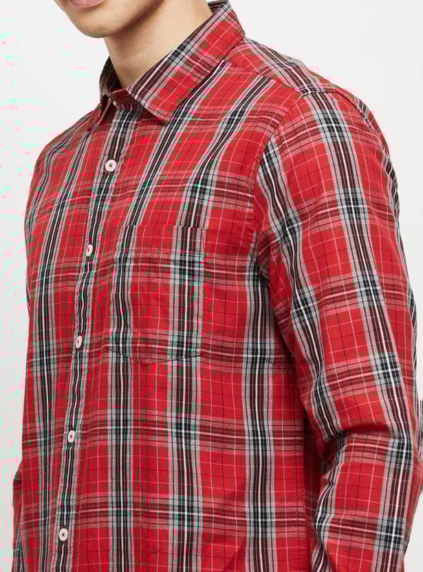 Men Checkered Spread Collar Shirt