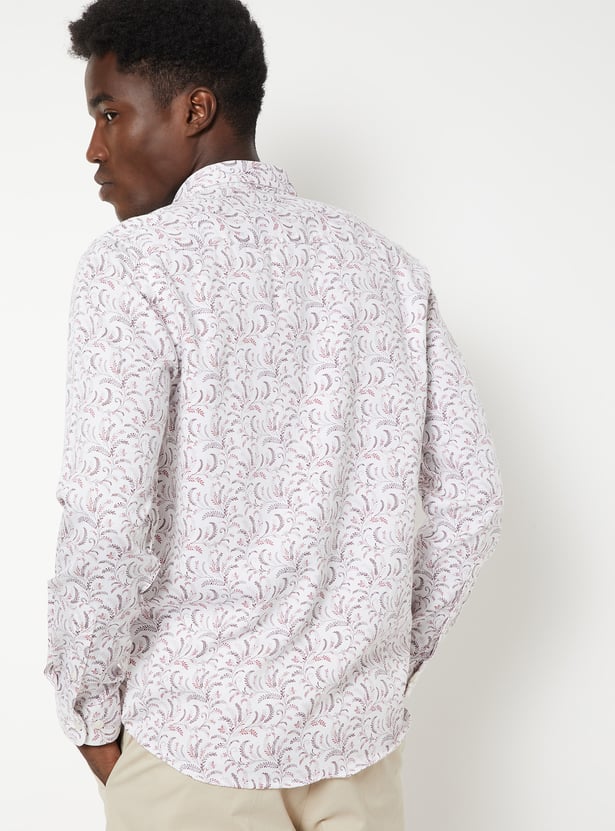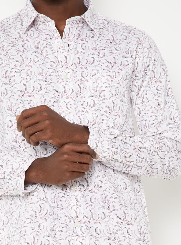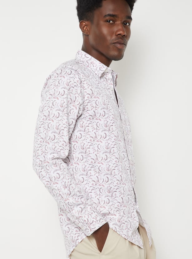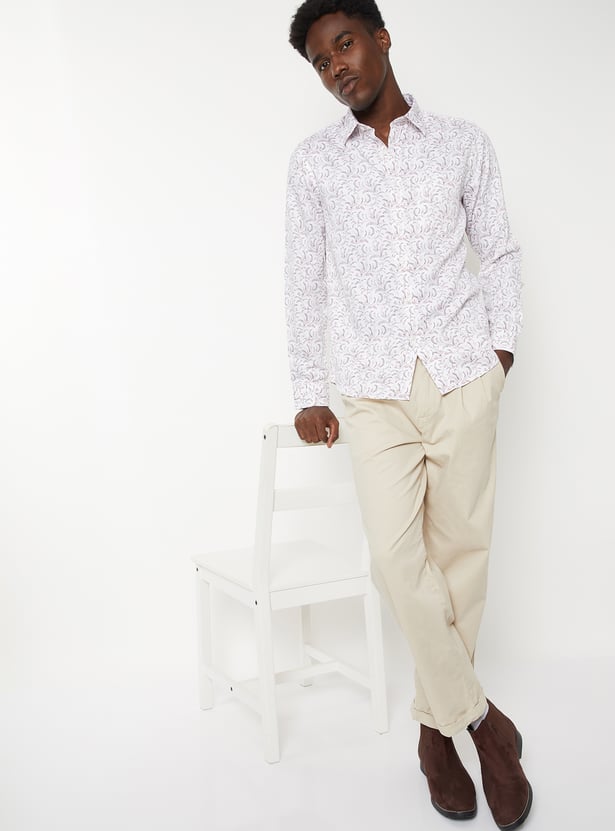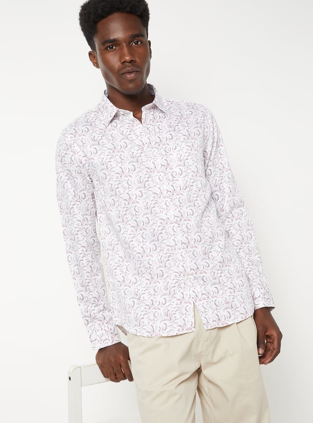 This printed slim fit shirt features a spread collar, button placket, and full sleeves with button cuffs, offering a modern and polished look. Its tailored silhouette and stylish print make it perfect for both formal and casual occasions.