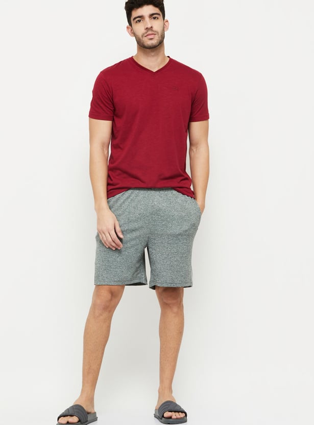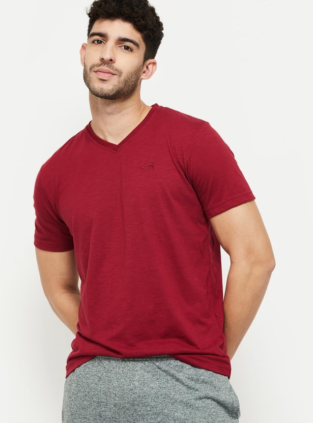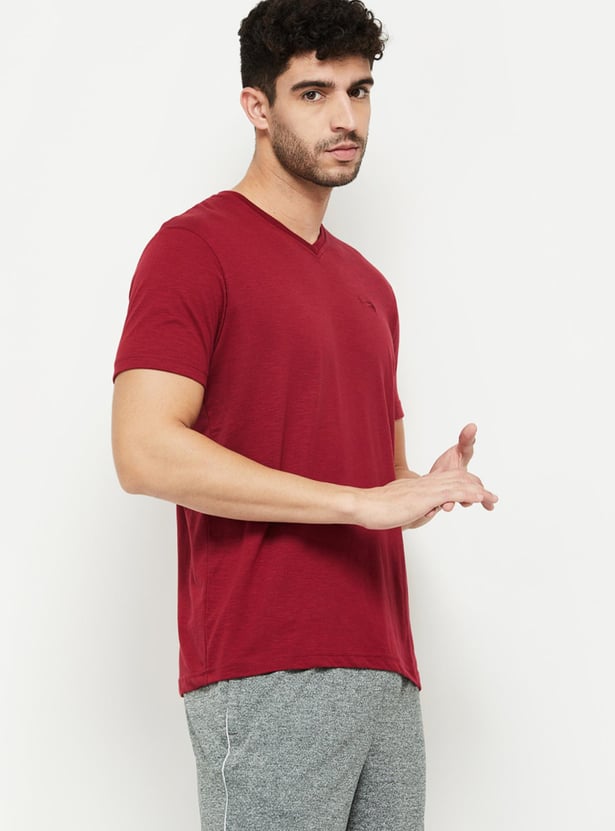 Men Solid V-Neck Regular Fit Lounge T-shirt