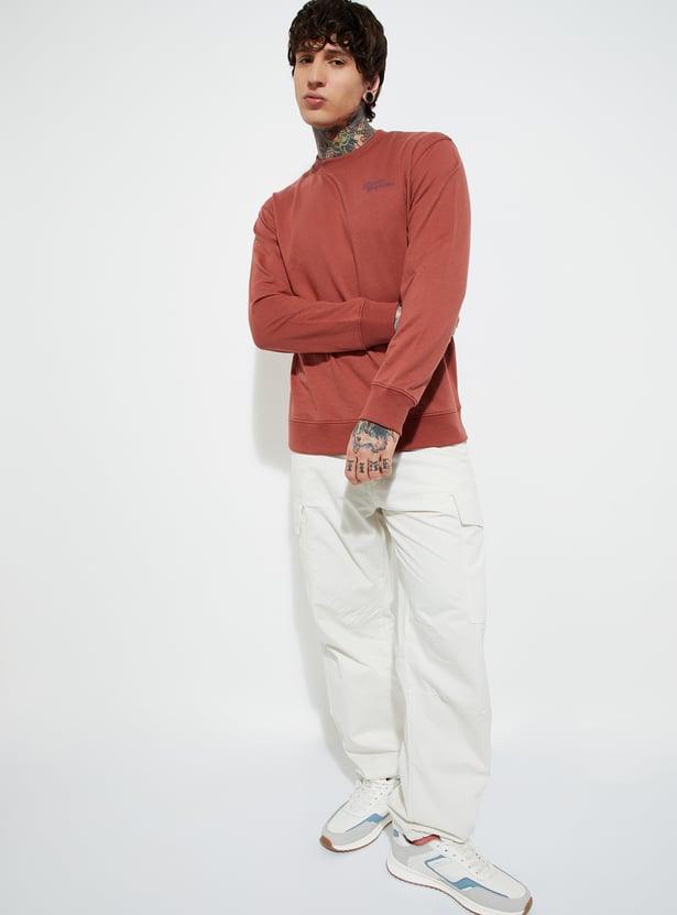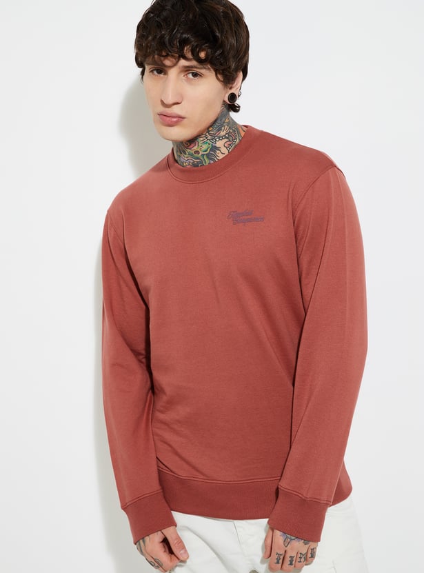 Stay comfortable and stylish in this knit sweatshirt, featuring a classic crew neck, full sleeves, and a ribbed hem for a secure fit. A versatile staple for layering on cooler days.