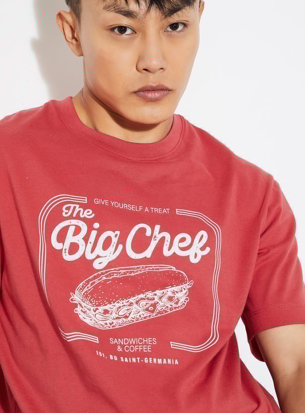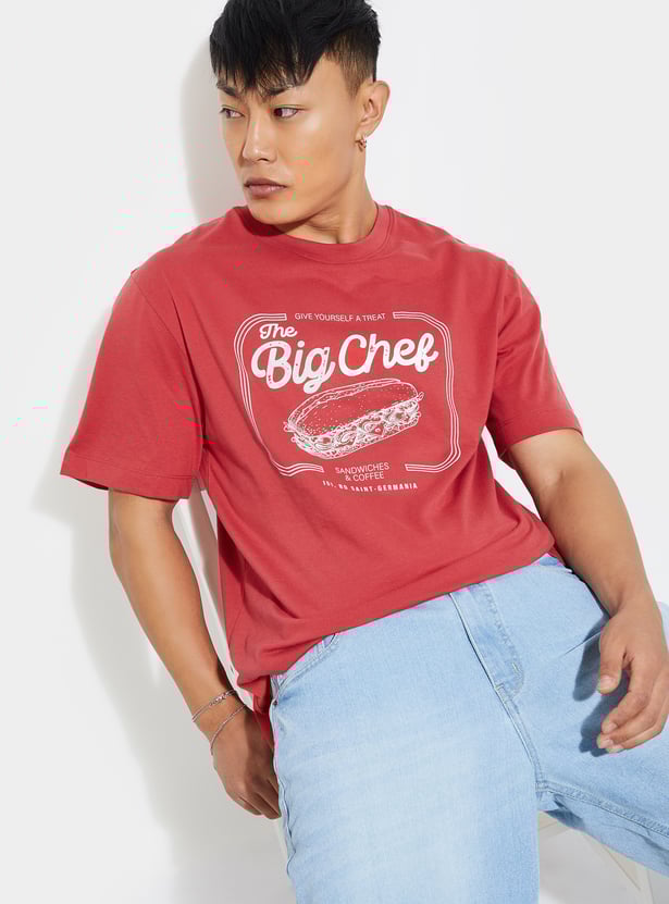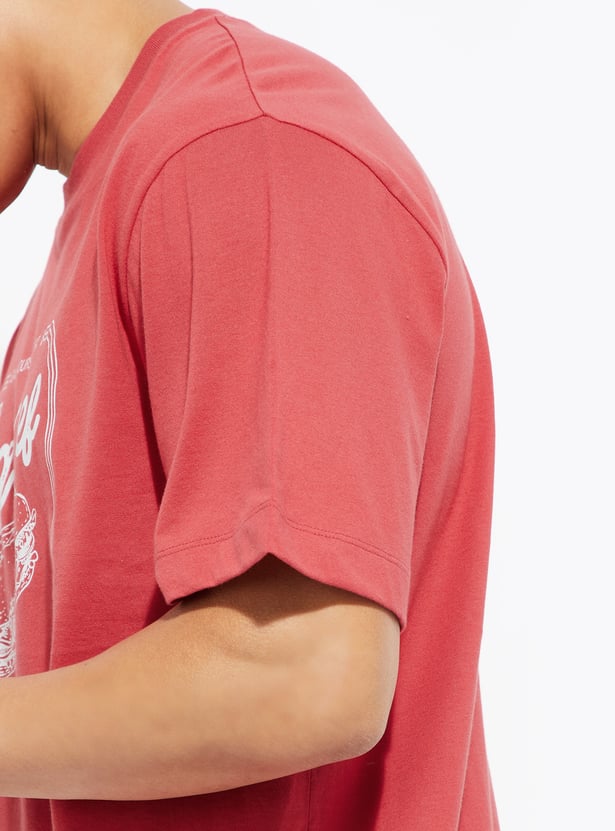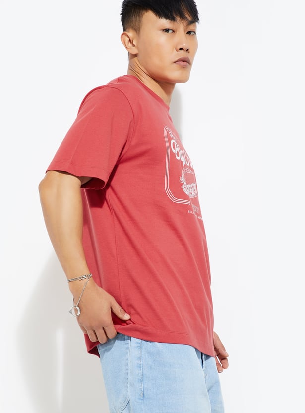Add a fun twist to your everyday style with this printed T-shirt, designed with a crew neck and half sleeves for a classic, comfortable fit.