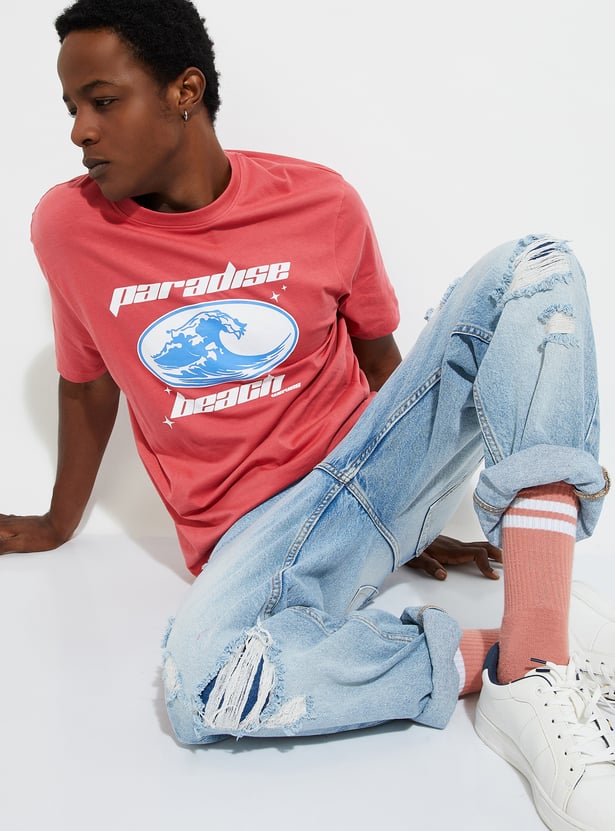 The perfect addition to your casual rotation, this T-shirt is updated with a graphic print on the chest. It has a crew neck, short sleeves, and a straight hem. The regular fit profile offers roomy comfort.