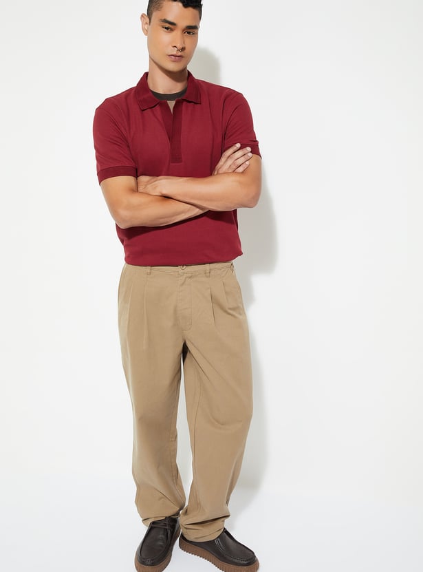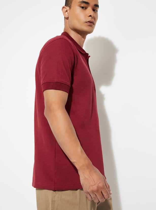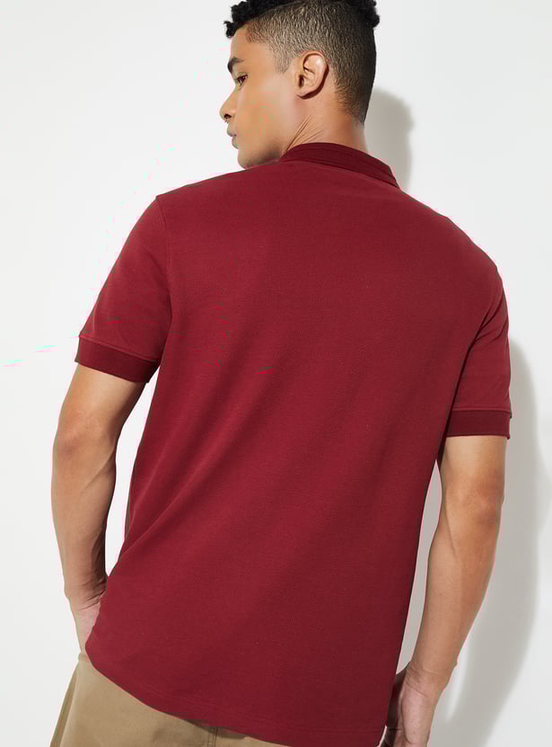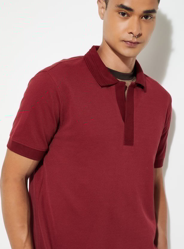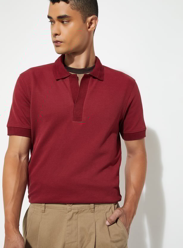 This solid Johnny collar T-shirt features half sleeves for a classic, sporty look. Crafted from soft fabric, it offers comfort and a clean, timeless style.