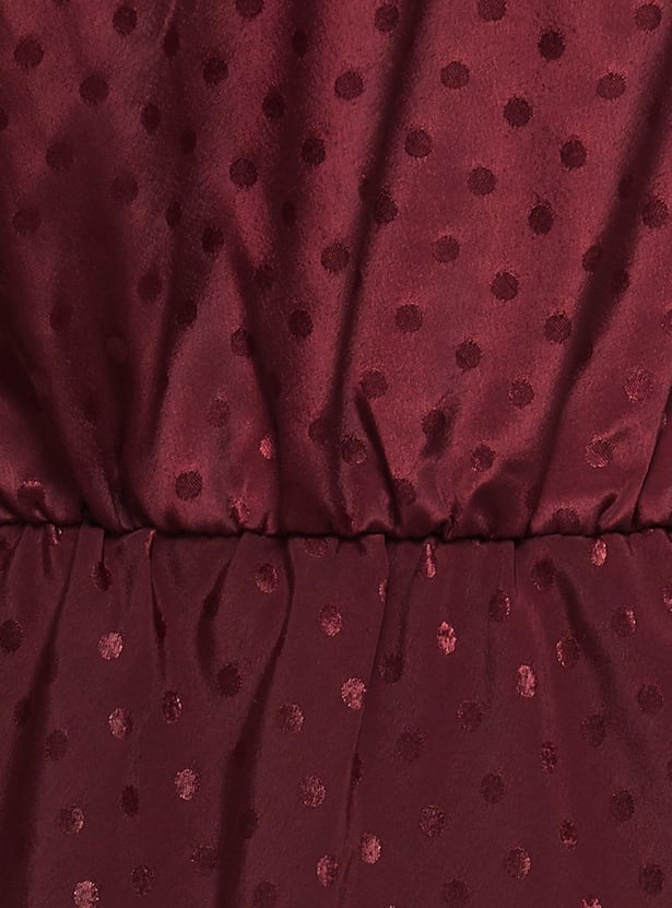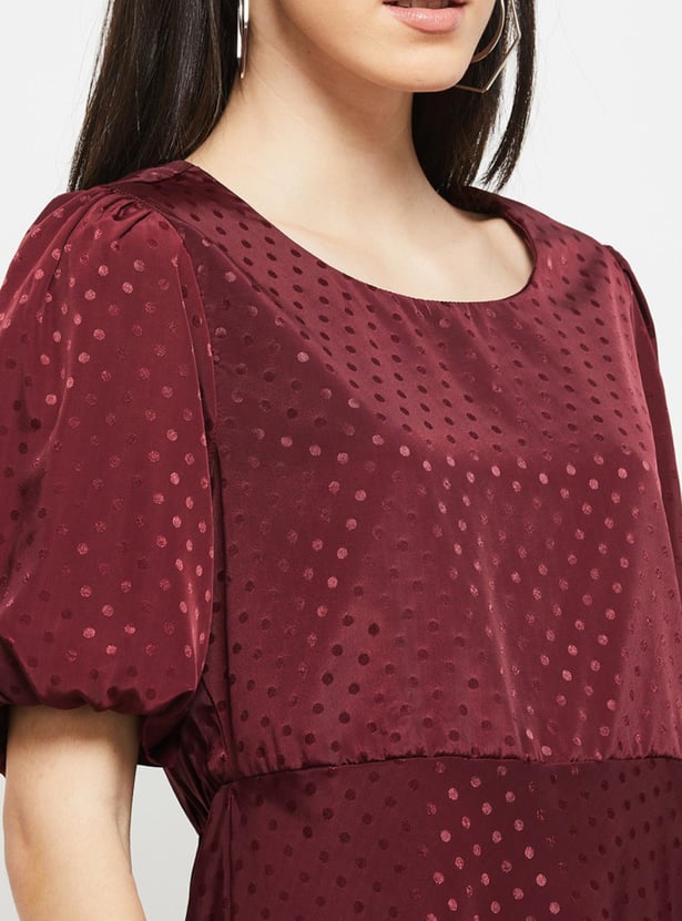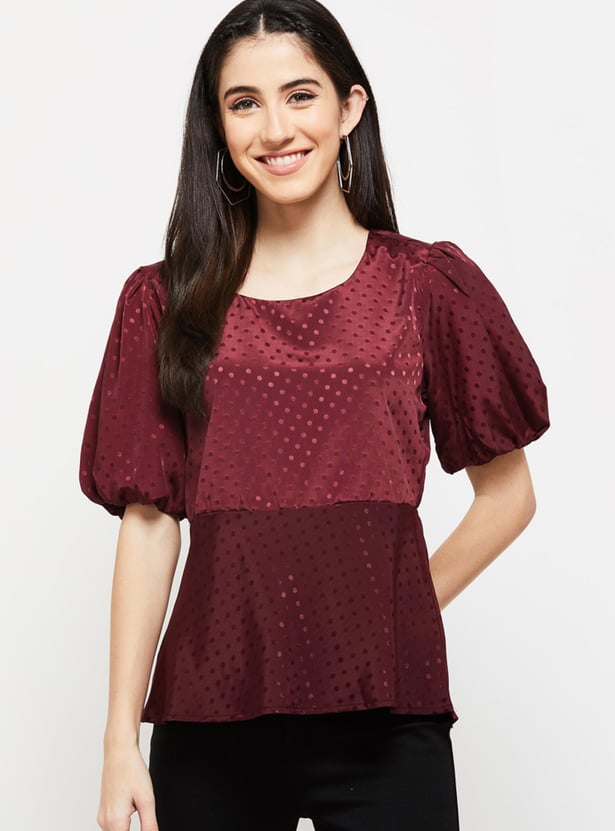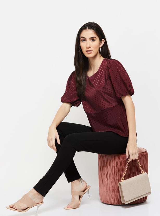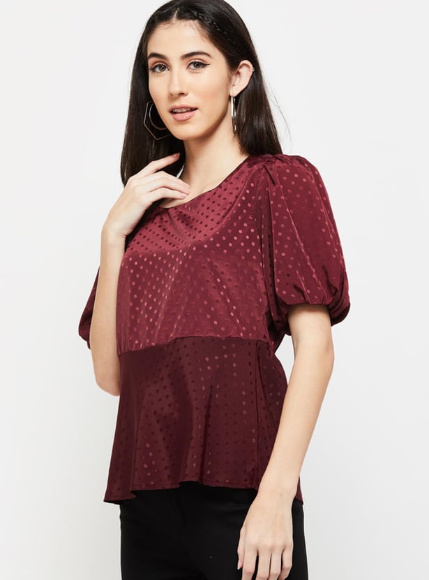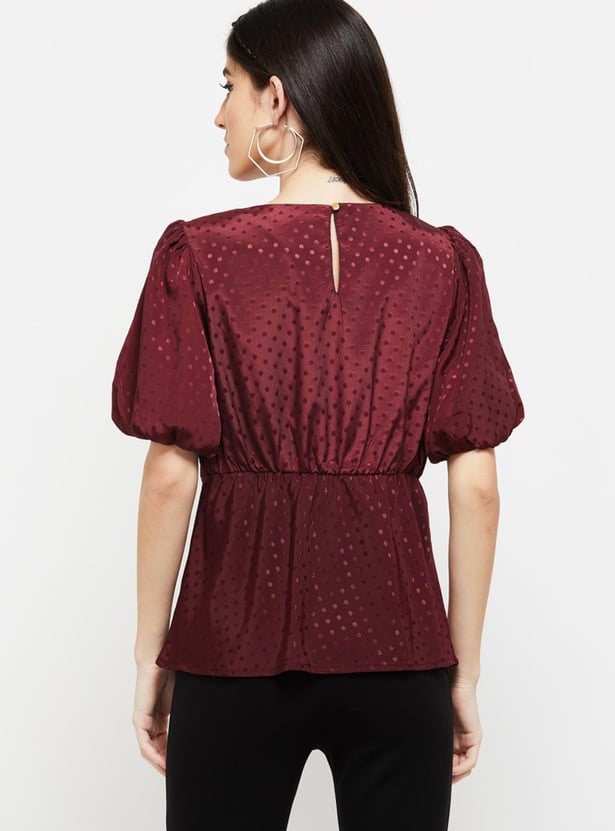 Women Dobby Textured Puffed Sleeve Peplum Top