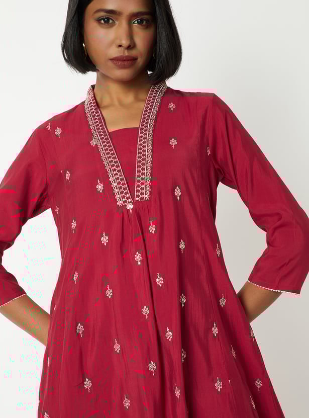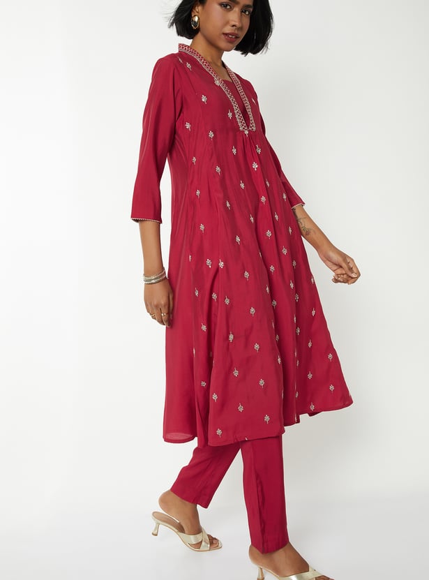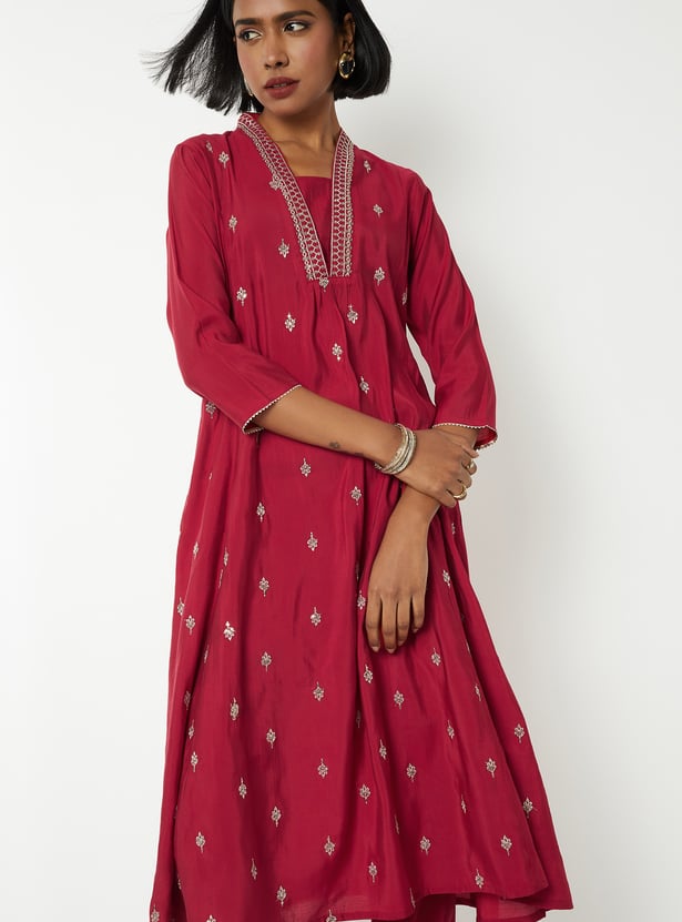 Women Embroidered A-line Kurta Set