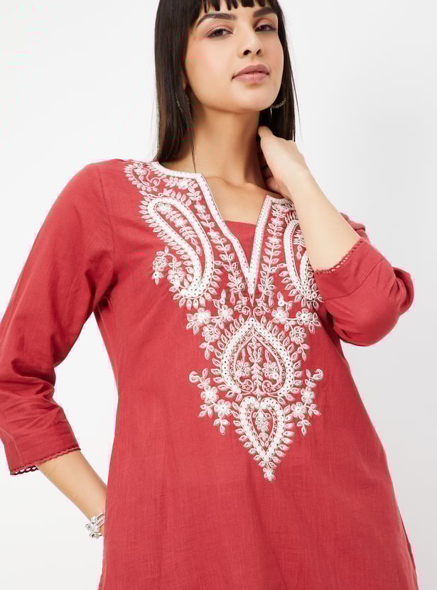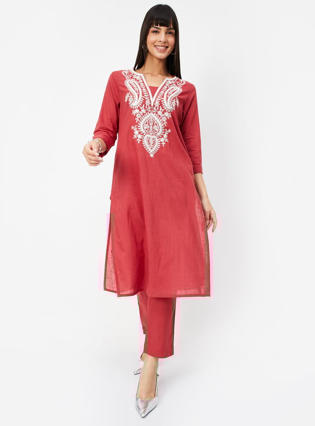 Women Embroidered Straight Kurta Set