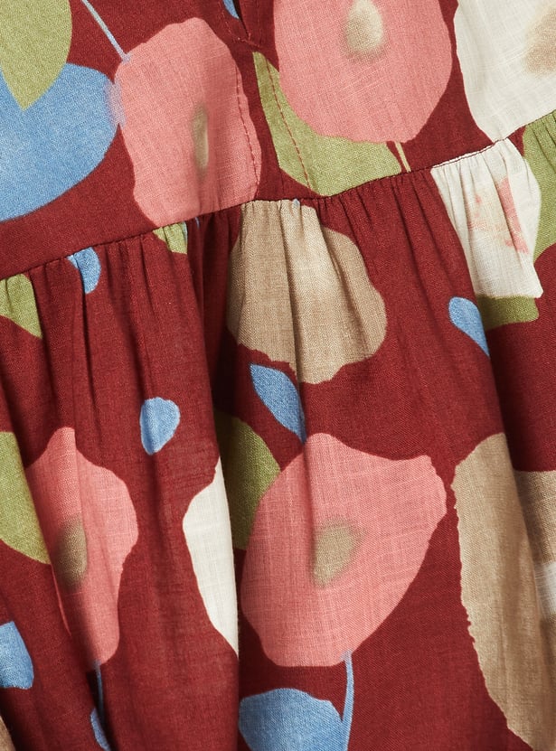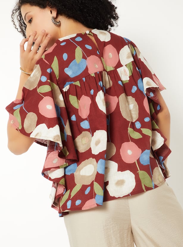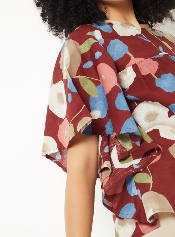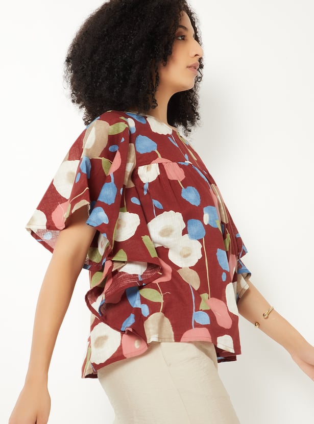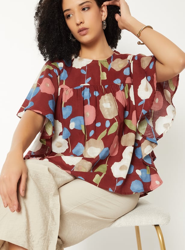 Step into effortless chic with this floral print top, designed to add charm to your everyday style. Featuring a classic round neck and breezy half batwing sleeves, it combines comfort with a touch of elegance for versatile wear.