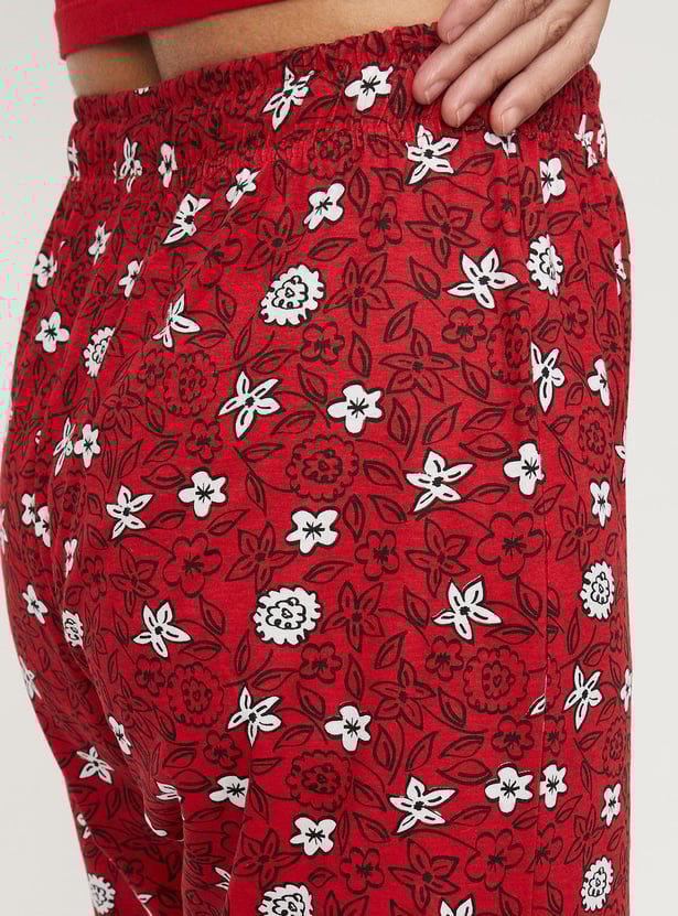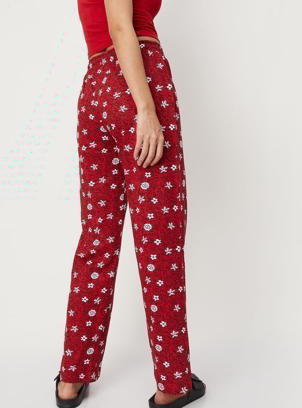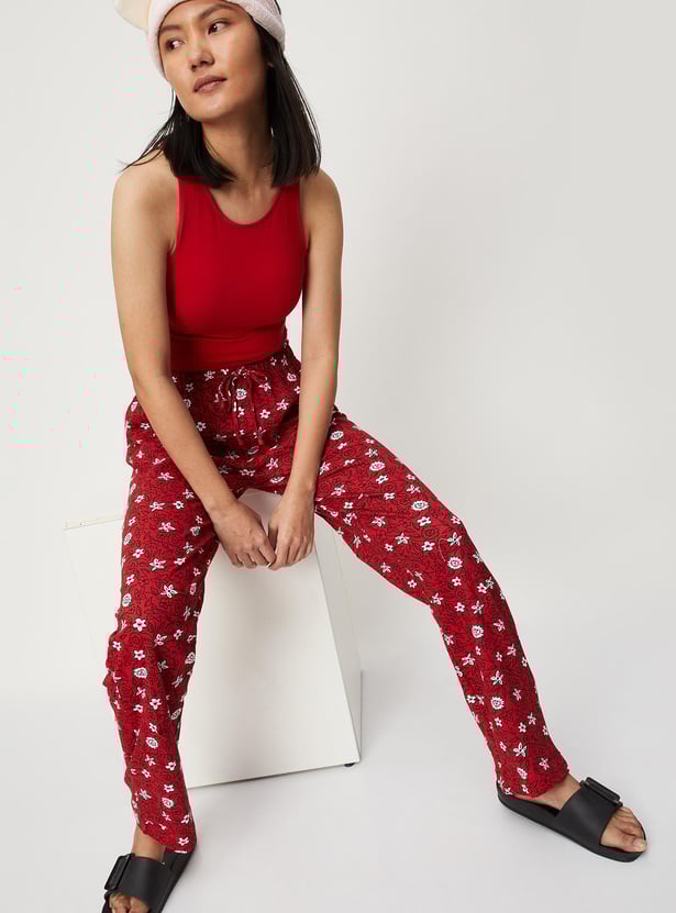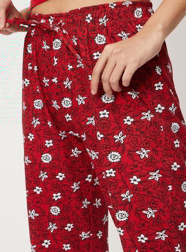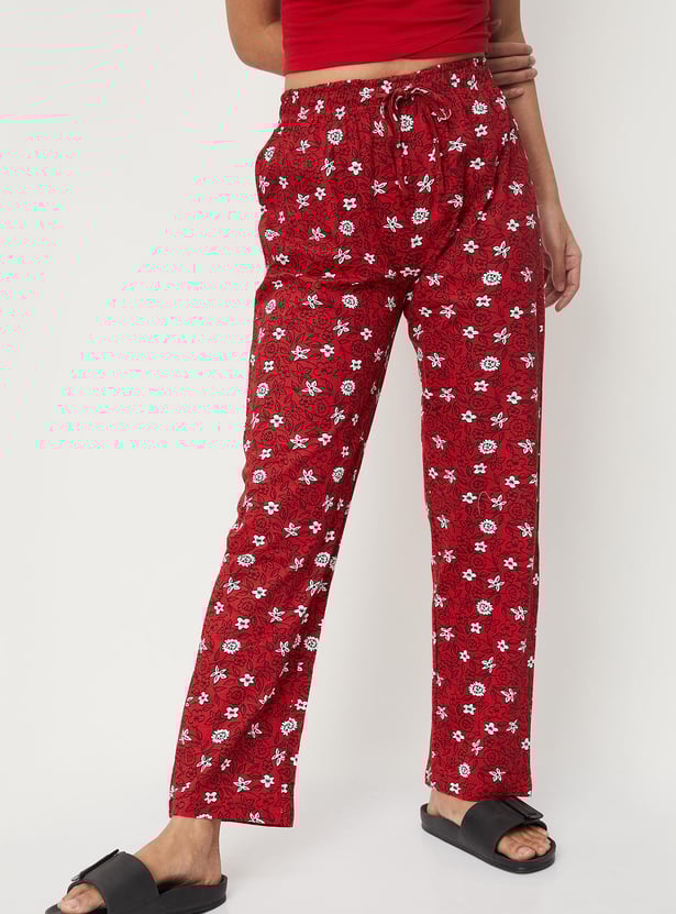 Lounge around your home in style in this pair of pyjamas. It is adorned with floral prints and equipped with a drawstring waist for a comfortable fit.
