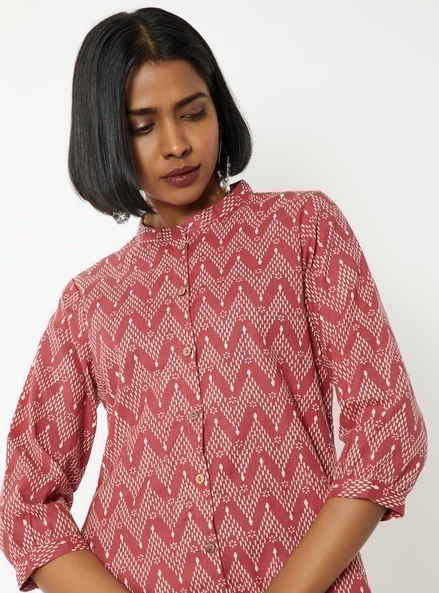 This printed straight short kurti features a classic band collar and 3/4th sleeves, offering a timeless and versatile style. The clean print makes it a perfect everyday essential that’s easy to dress up or down.