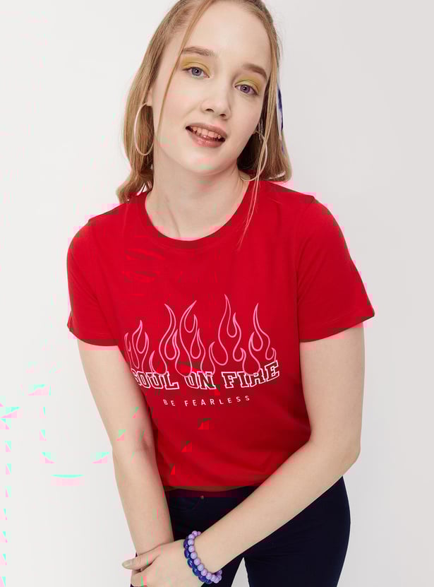 Designed with a graphic print on the chest, this T-shirt is a perfect addition to your casual rotation. It has a round neckline and short sleeves. Pair this tee with jeans and a tote bag for a style upgrade.
