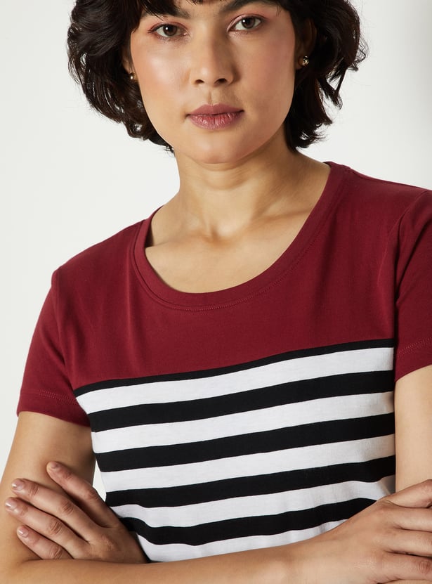 This colourblock T-shirt offers a regular fit, half sleeves, and a classic round neck for effortless comfort. Its bold design brings a modern, sporty edge to everyday wear. Model Size :