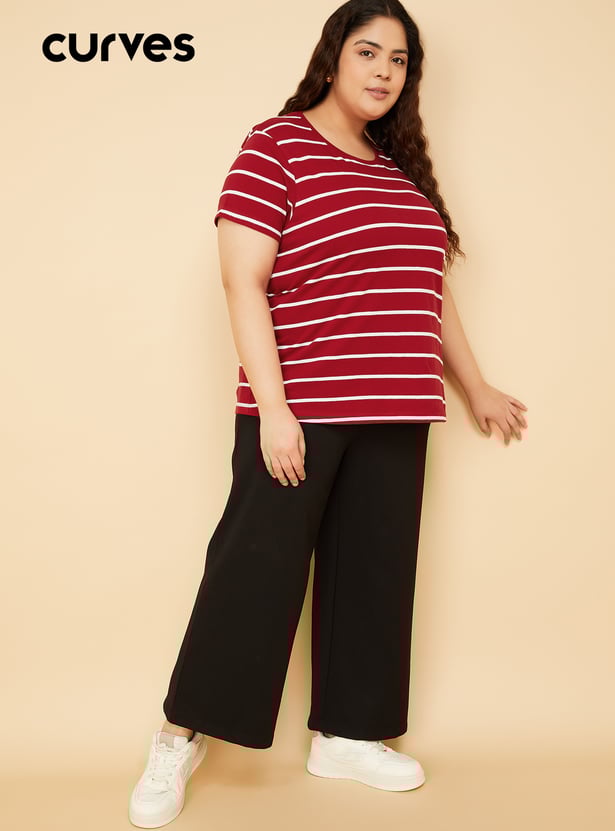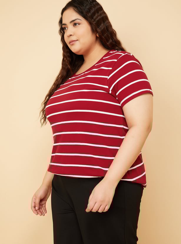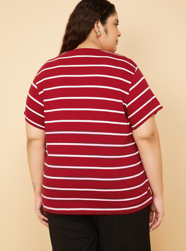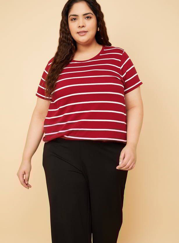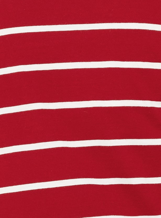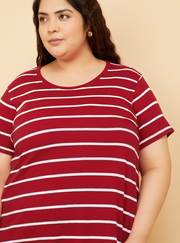 Stay casual and comfy with this striped T-shirt featuring a round neck, straight hem, and half sleeves for easy everyday wear. Model Size :