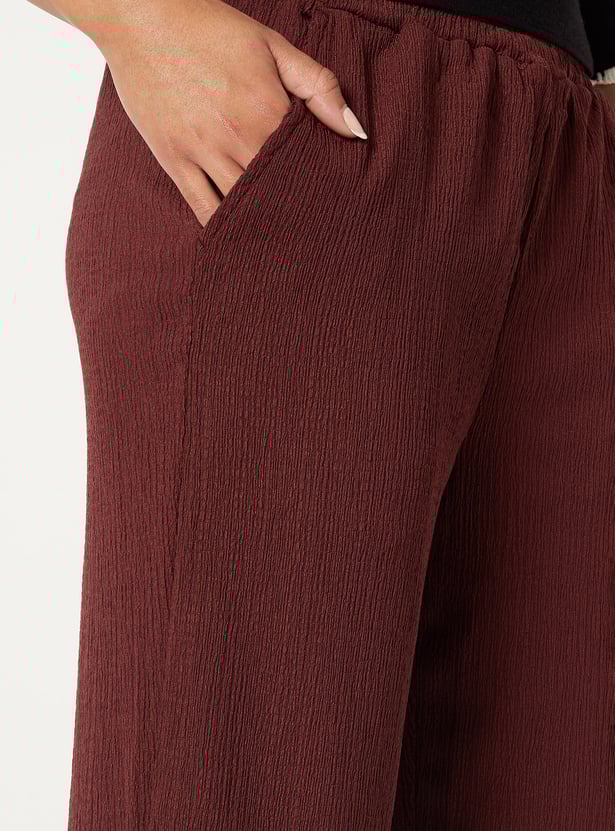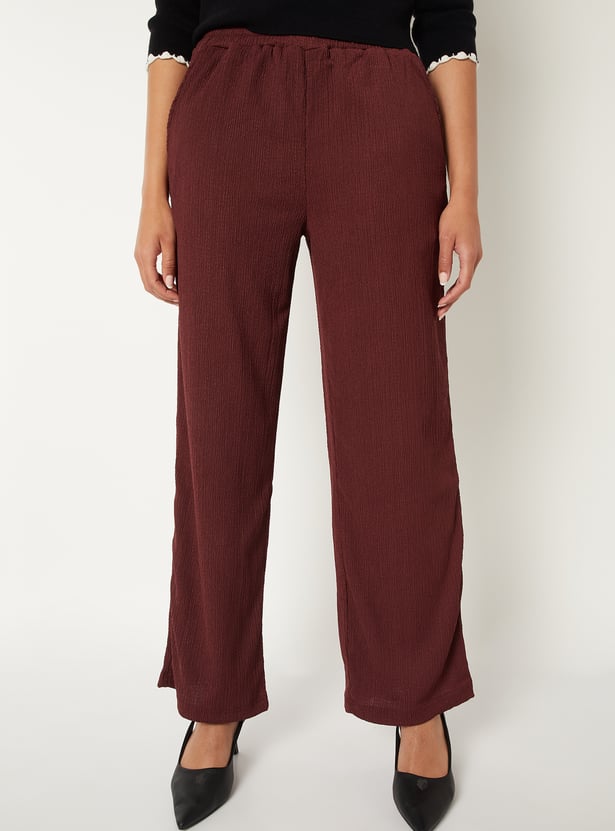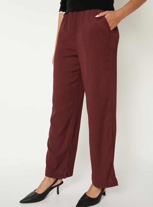 Stay effortlessly stylish with these textured comfort fit trousers, designed with an elasticated waist, mid-rise, and side pockets for all-day ease. Perfect for lounging or stepping out in laid-back style.