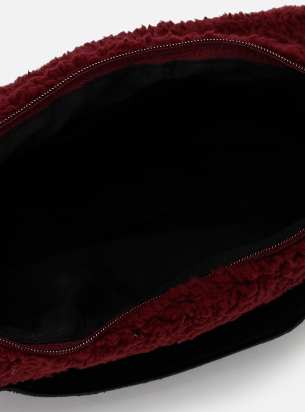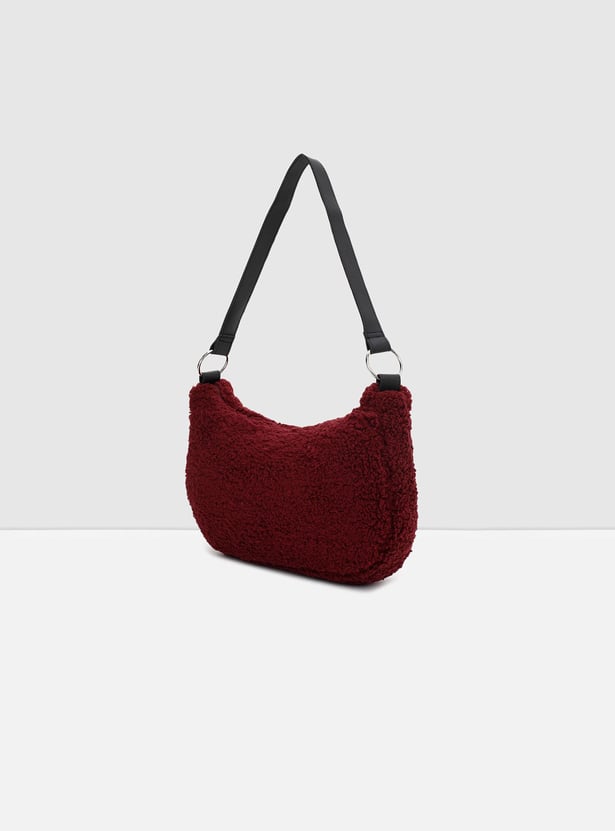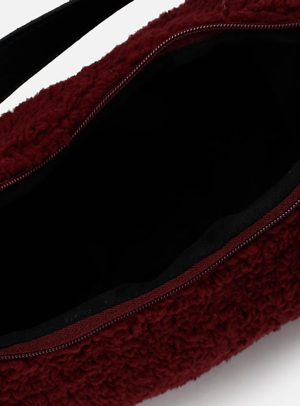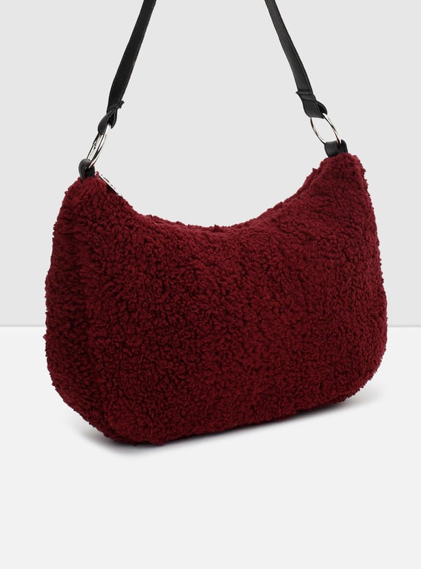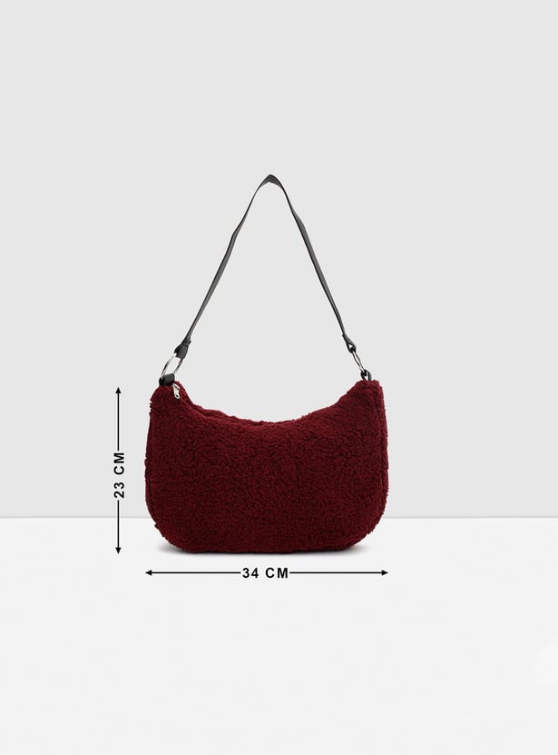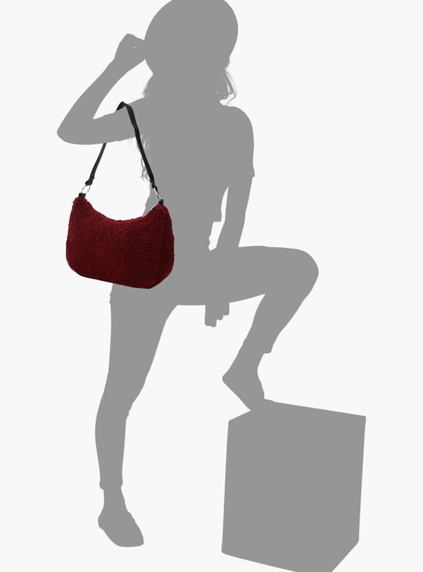 Perfect for a casual day out, this hobo bag is a must-have in your collection. It features a plush textured exterior, a flat strap, and a compact zip compartment.