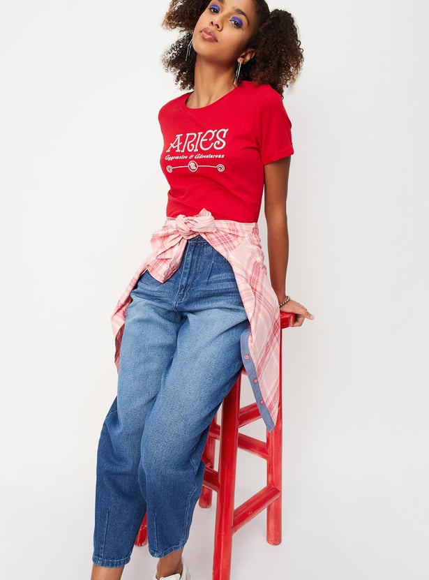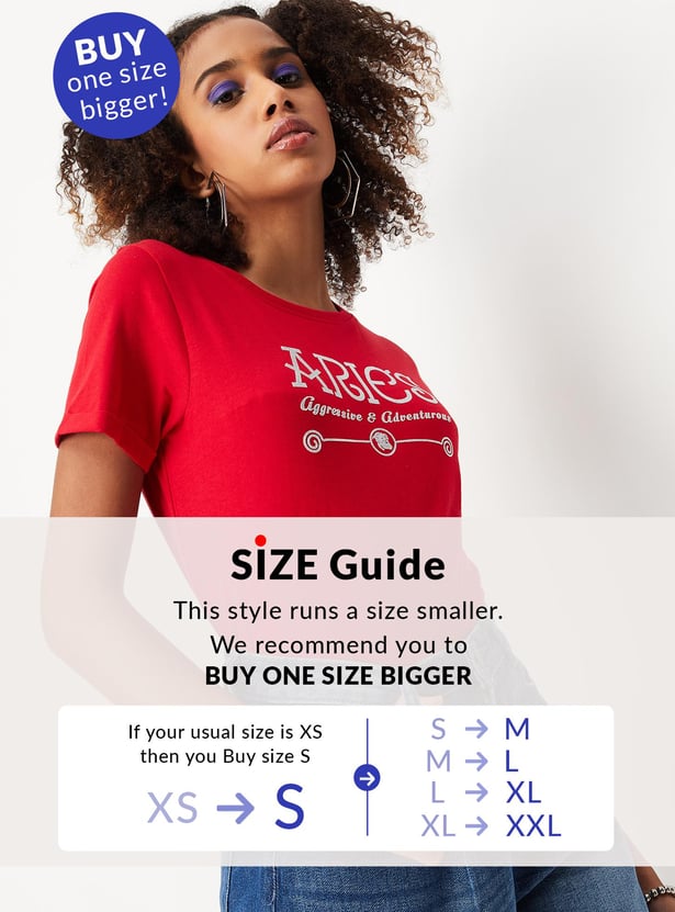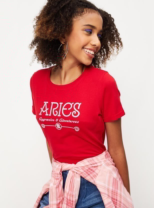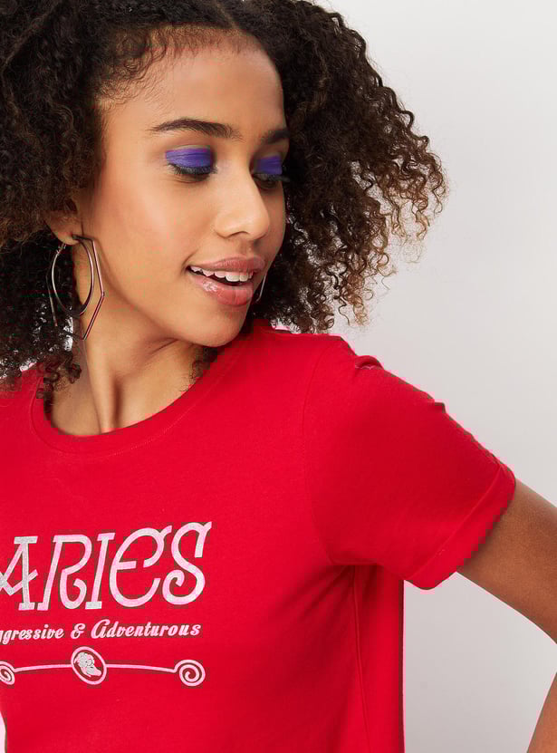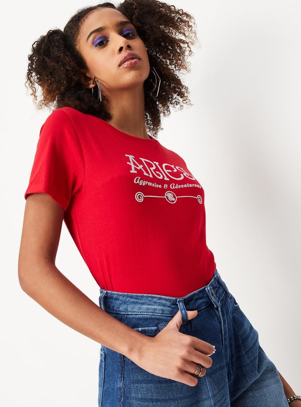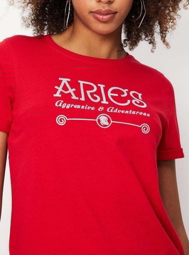Women Zodiac Printed Round Neck T-shirt