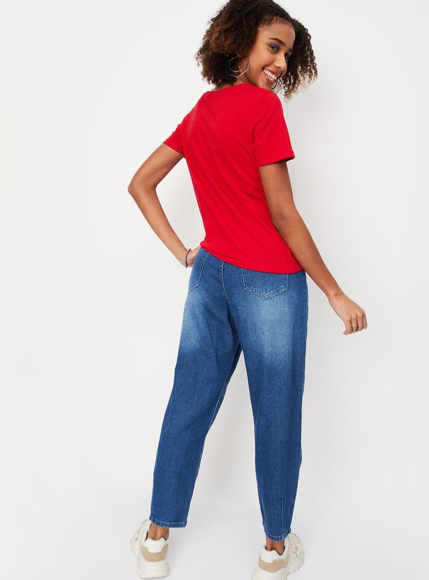 Let your style speak for yourself with this t-shirt. It comes with a slogan-printed surface, half sleeves, and a round neckline. Team it up with a pair of jeans and lace-up shoes to complete the look.