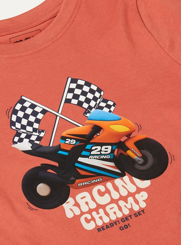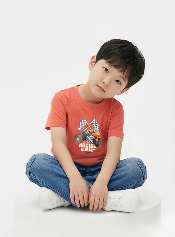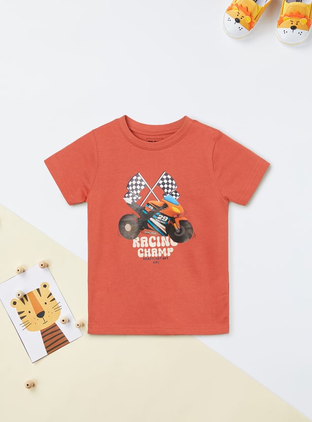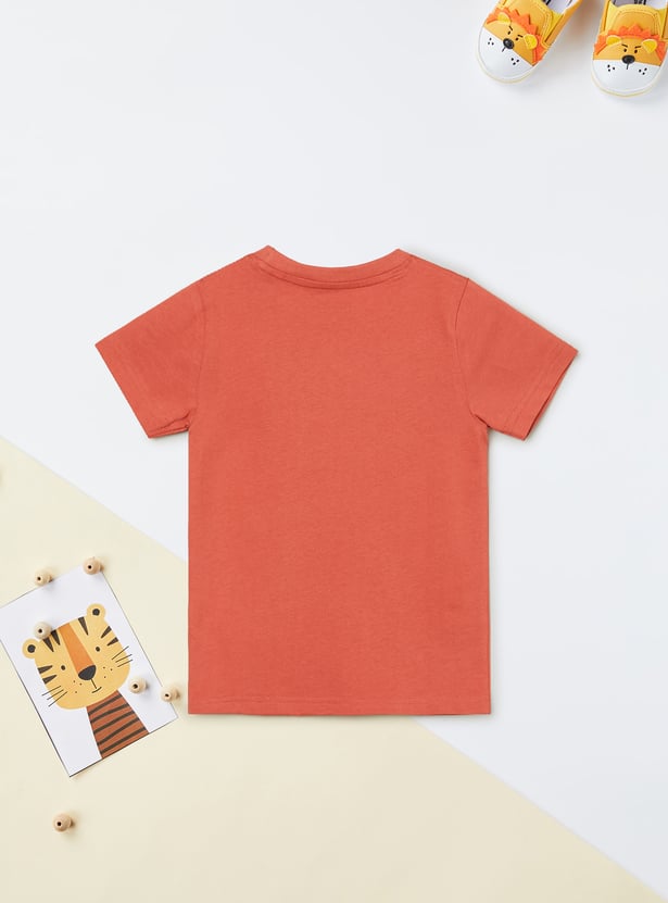 Brighten up his casual wardrobe with this graphic print T‑shirt, featuring a crew neck and half sleeves for everyday comfort and playful style.