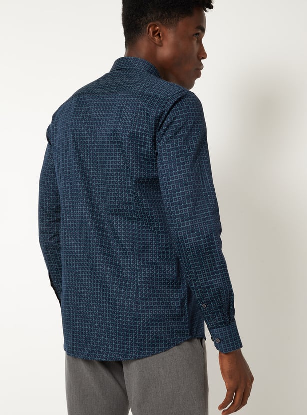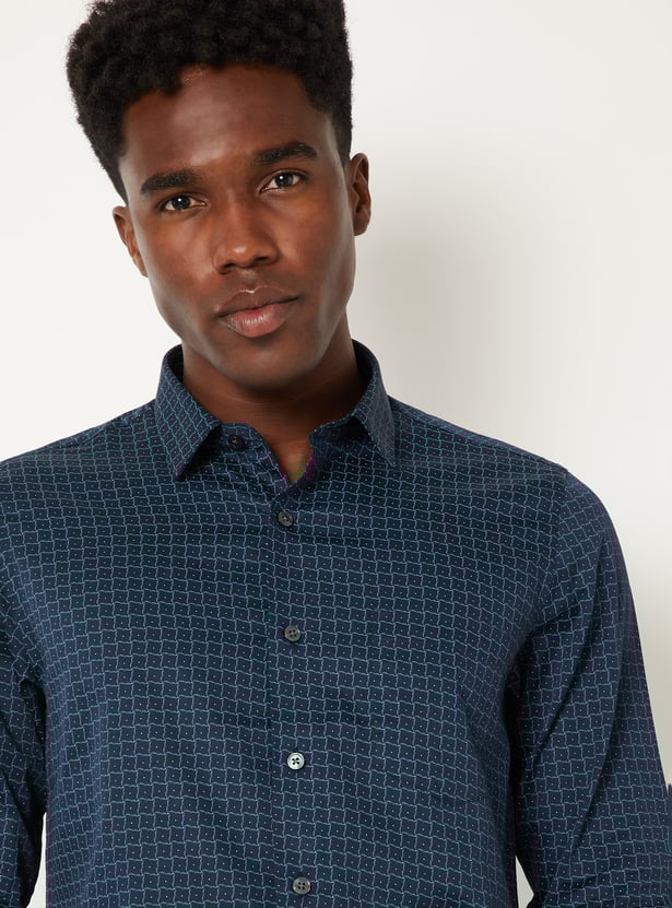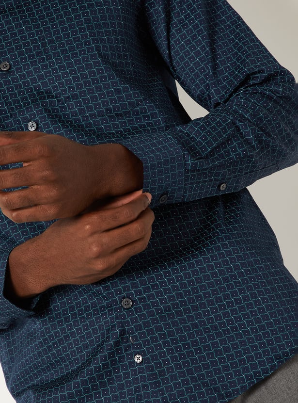 Men Printed Satin Finish Slim Fit Formal Shirt