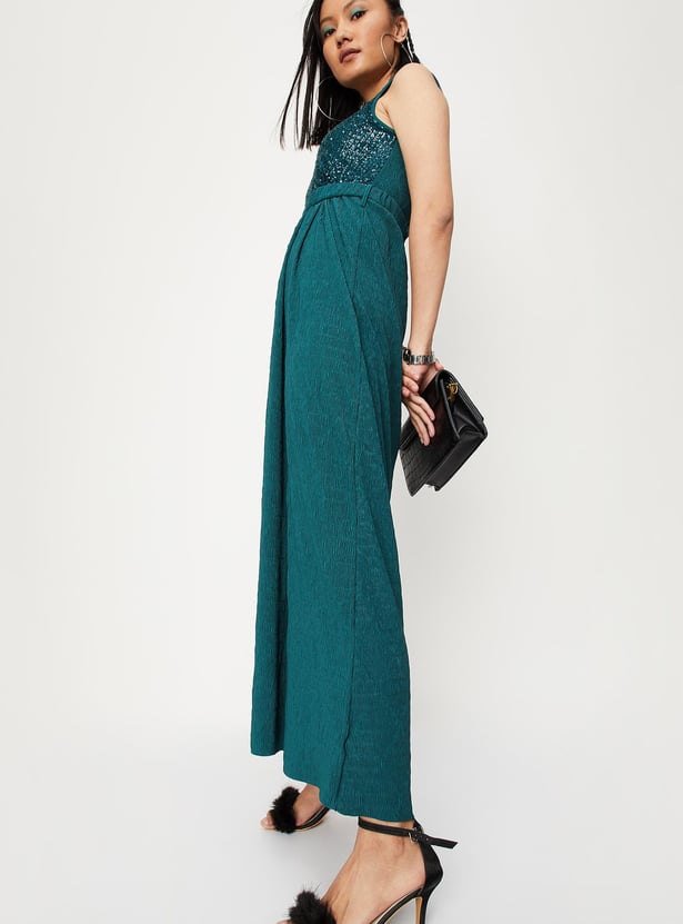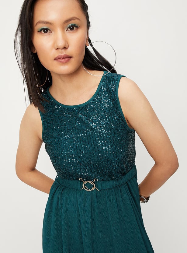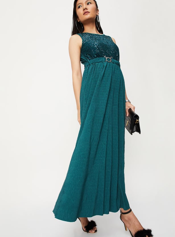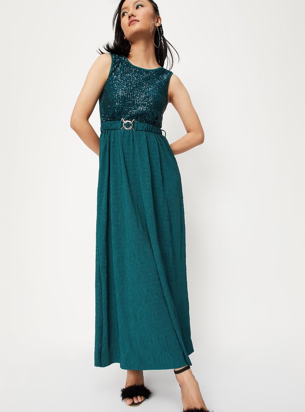 Women Sequinned Belted Maxi Dress