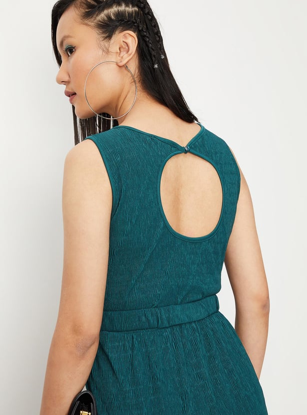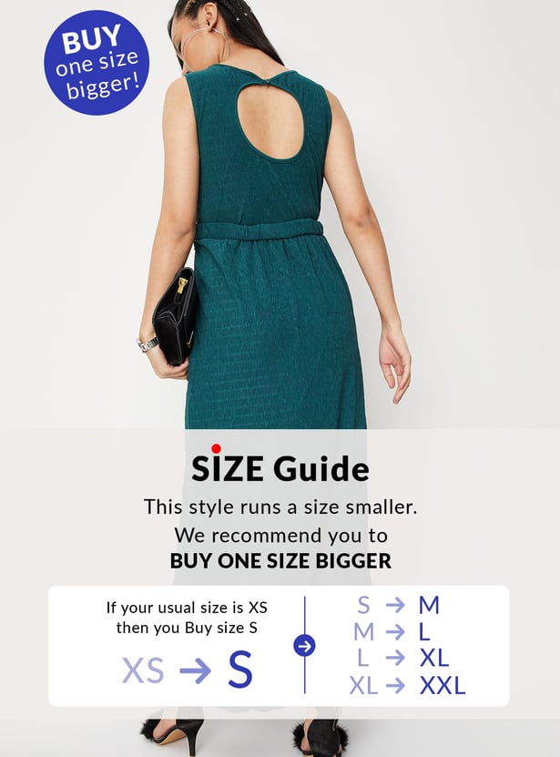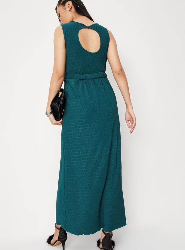 Steal the spotlight in this maxi dress that features a round neck, cut-out and belt detail. It is complemented by a sequin-embellished yoke. Pair it with slim heels and an evening clutch for a chic-style appeal.