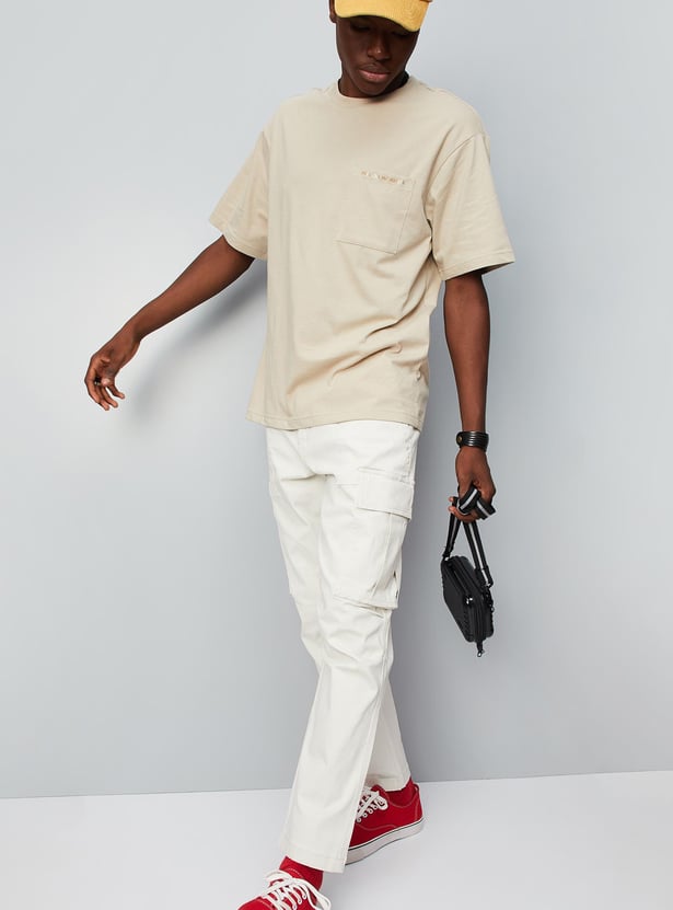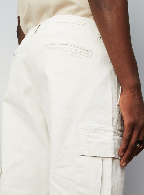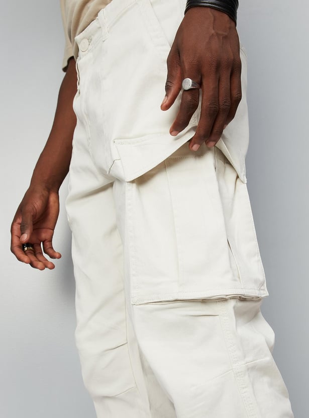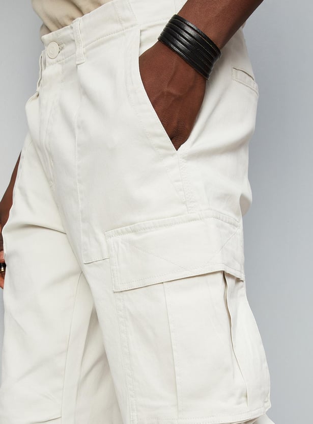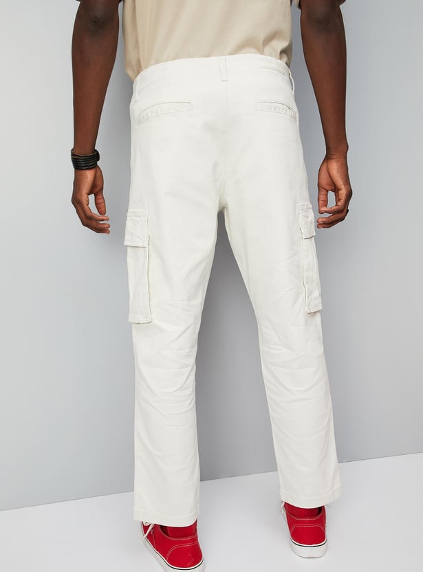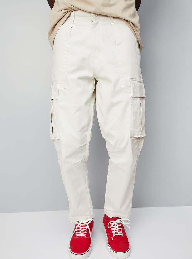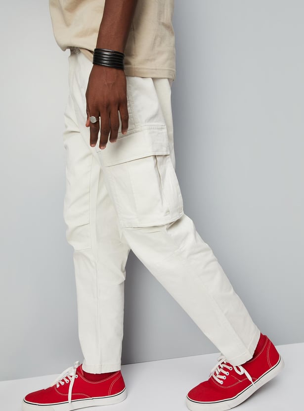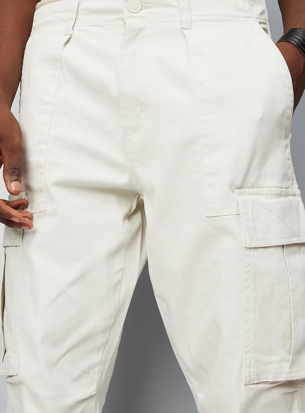 URB_N Men Solid Carrot Fit Cargo Trousers