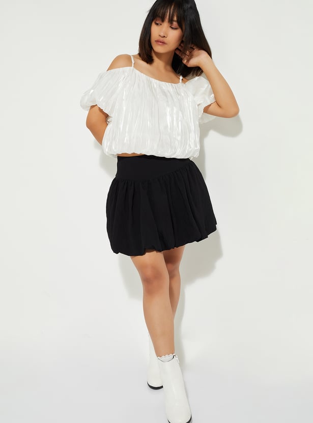 ALAYA F x URB_N Women Gathered Cold Shoulder Top