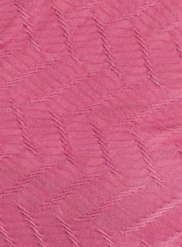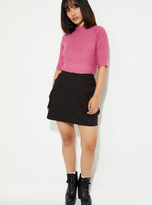 Add a pop of colour to your urban wardrobe with this top, featuring a textured finish that catches the eye. Designed with a high neckline and half sleeves, it blends chic style with urban sophistication, perfect for making a statement in the city streets.