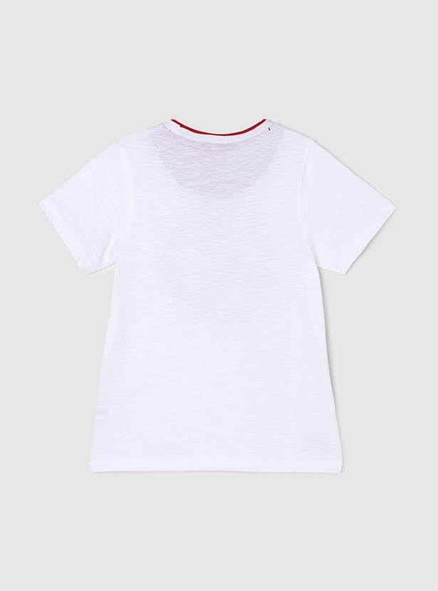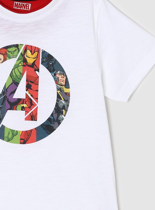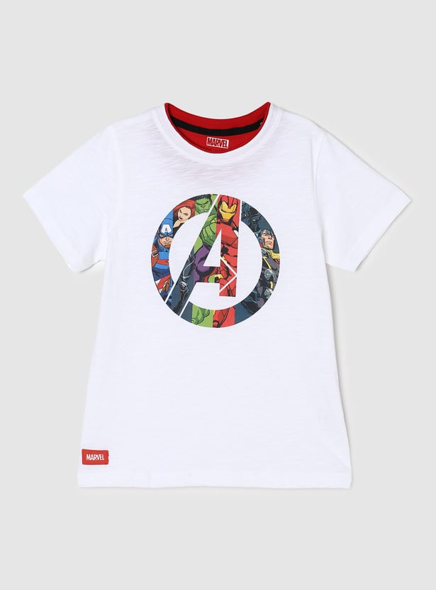 Update your little superhero’s wardrobe with this T-shirt. It is updated with Avengers graphic print on the chest, a crew neck, and short sleeves.