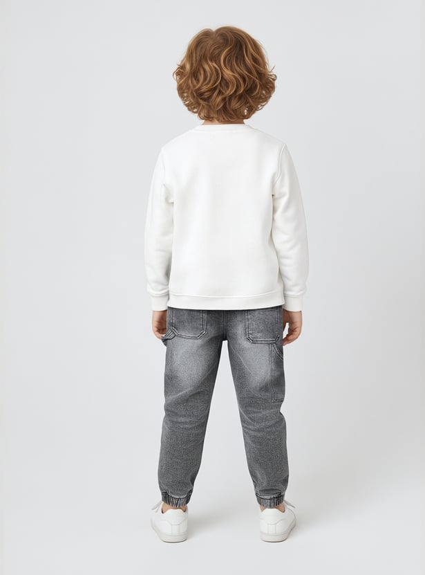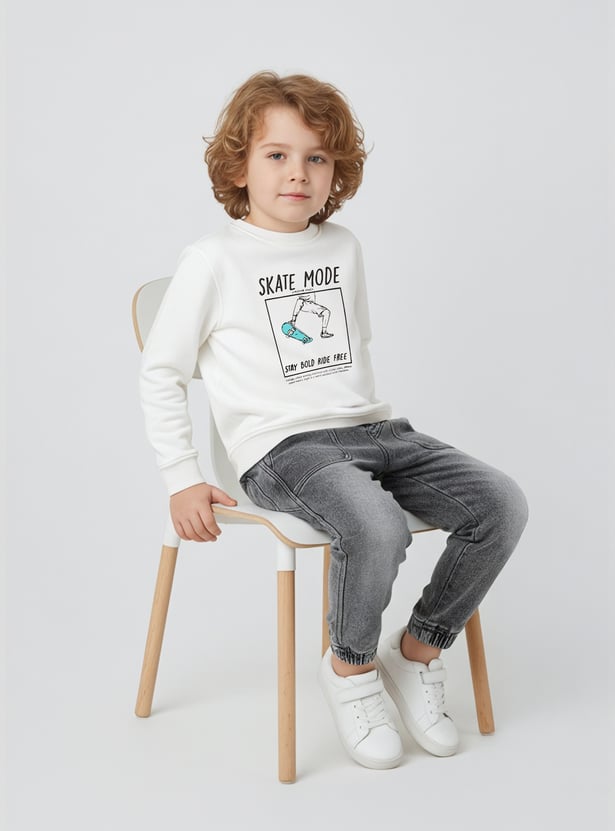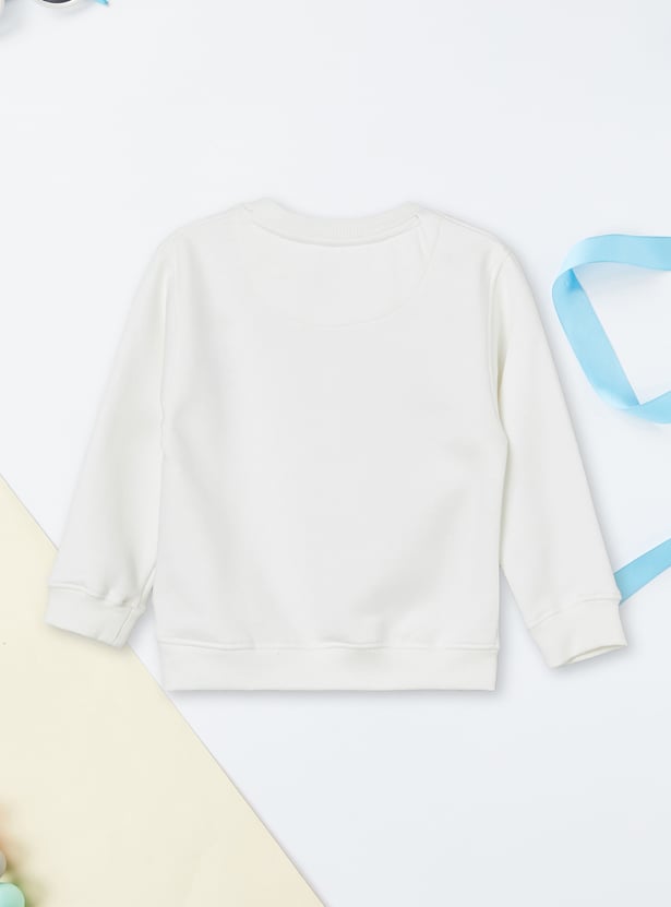 Keep your kid warm and cosy in this sweatshirt while they step out to play during the winter. It features a charming print, a crew neckline, full sleeves, and a ribbed hem, making it stylish and snug for chilly days.