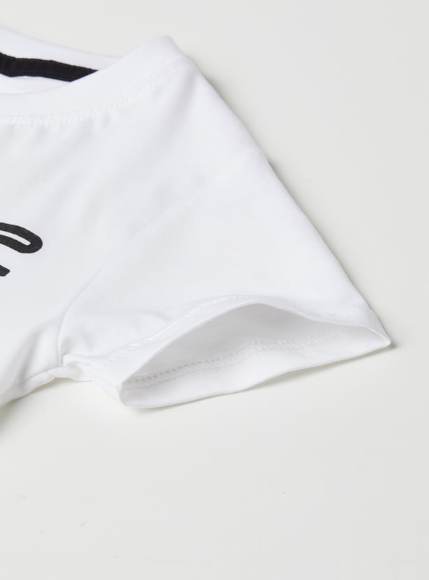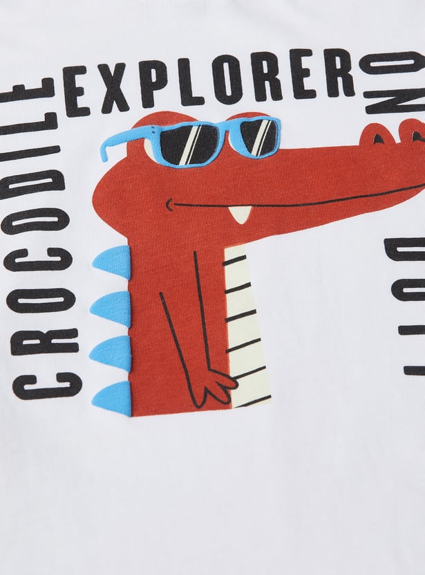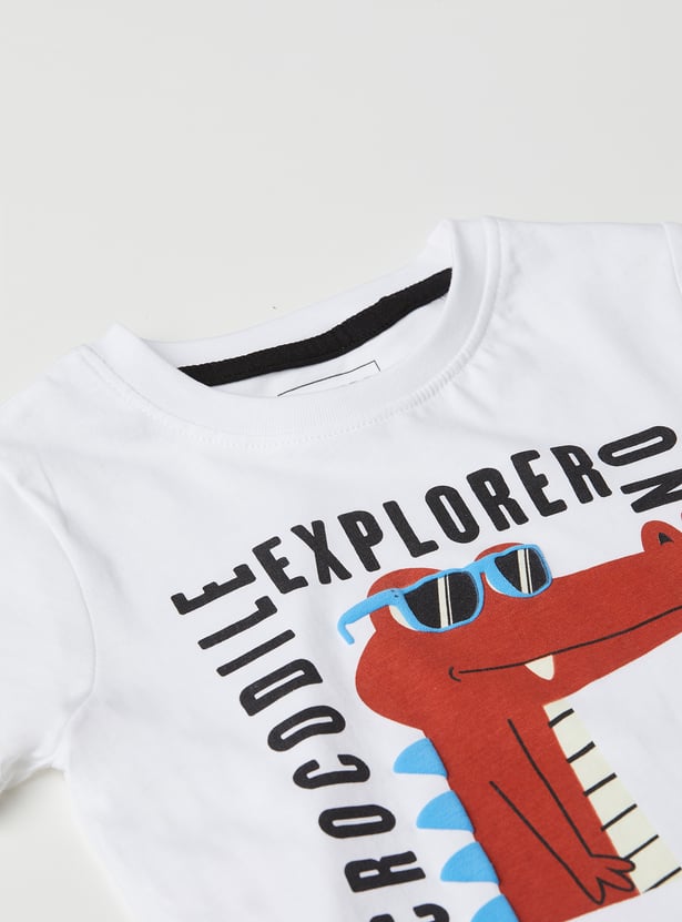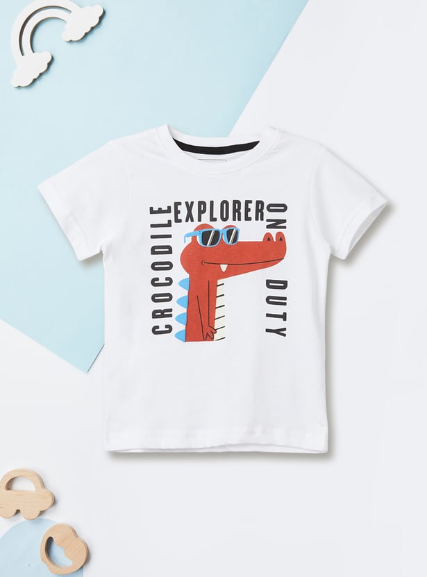 A perfect addition to your kid's summer collection is this T-shirt highlighted with a graphic print. Featuring a crew neck and short sleeves, it's ideal for a casual yet stylish look.