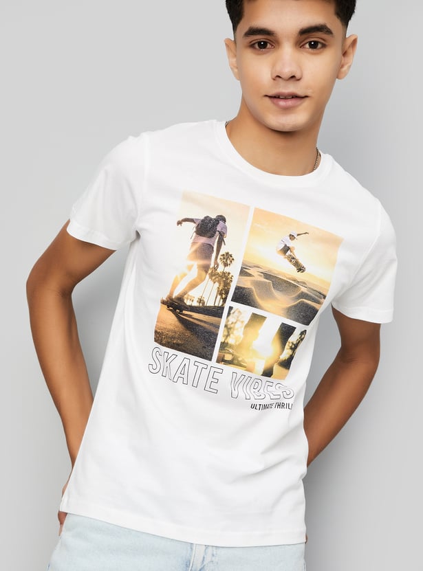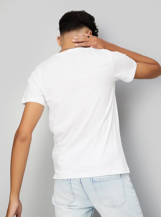 A perfect addition to your summer collection, this T-shirt is highlighted with a bold graphic print. Featuring a classic crew neck and half sleeves, it offers both comfort and style for warm-weather days.