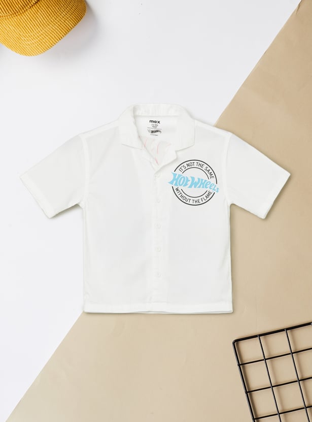 A Hot Wheels printed shirt designed with a resort collar, button-down front, and comfortable half sleeves for easy wear. The bold print and relaxed silhouette make it a standout choice for casual days, warm-weather outings, and playful styling.