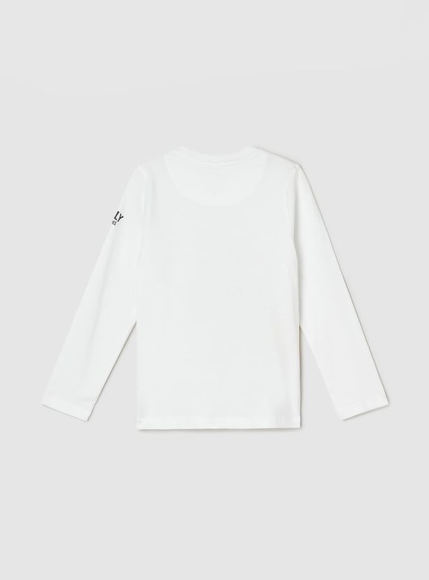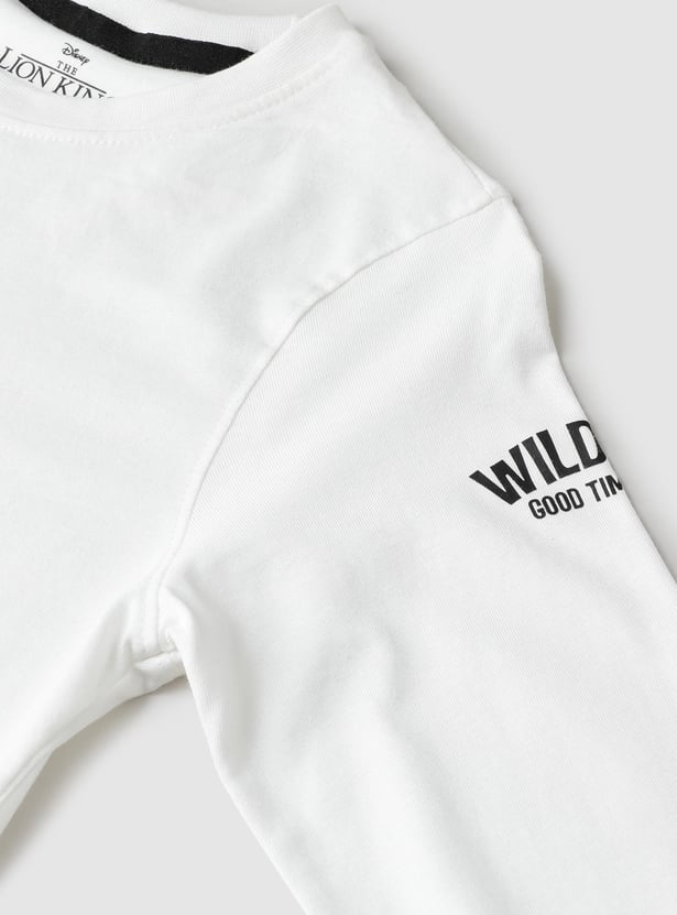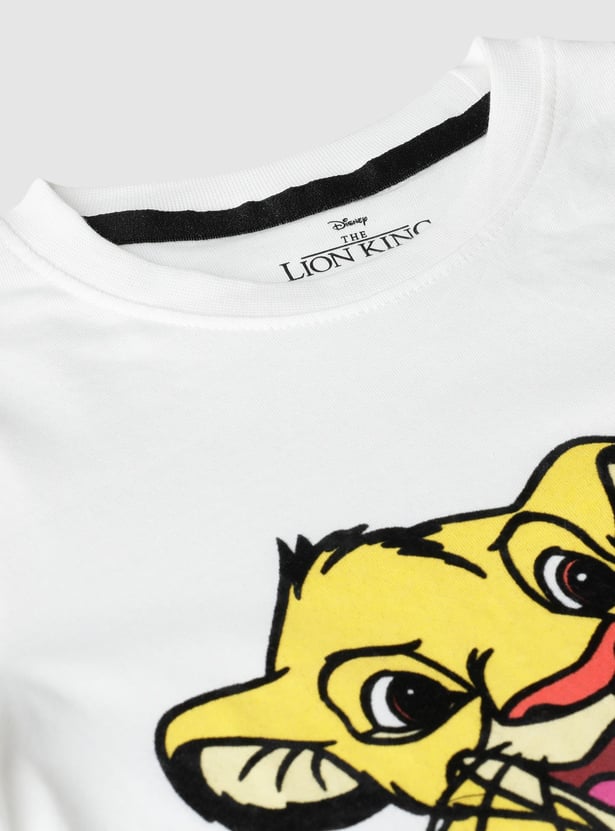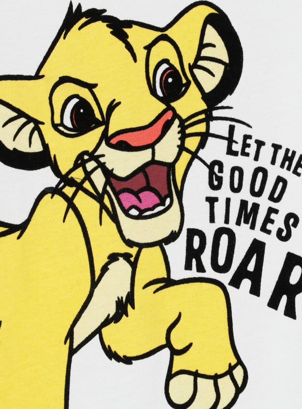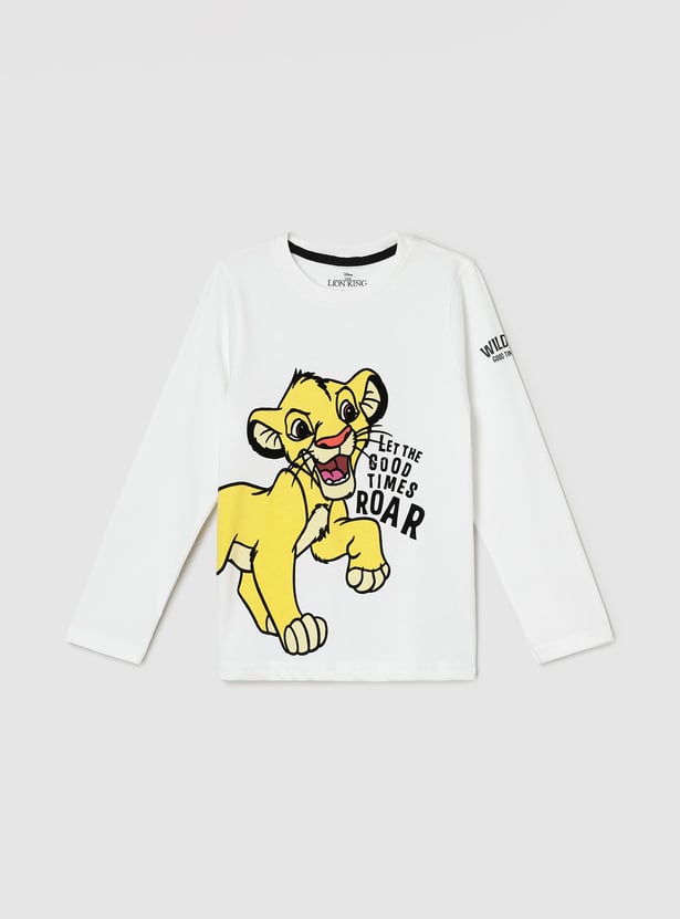 This Lion King printed T-shirt with full sleeves and a crew neck will spruce up your child's casual attire. To get your little one ready for a vacation, pair it up with jeans and sneakers for a snazzy look.