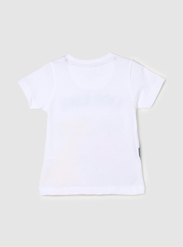 This Lion King printed T-shirt with chenille embroidery, half sleeves and a crew neck will spruce up your child's casual attire. To get your little one ready for a vacation, pair it up with jeans and sneakers for a snazzy look.