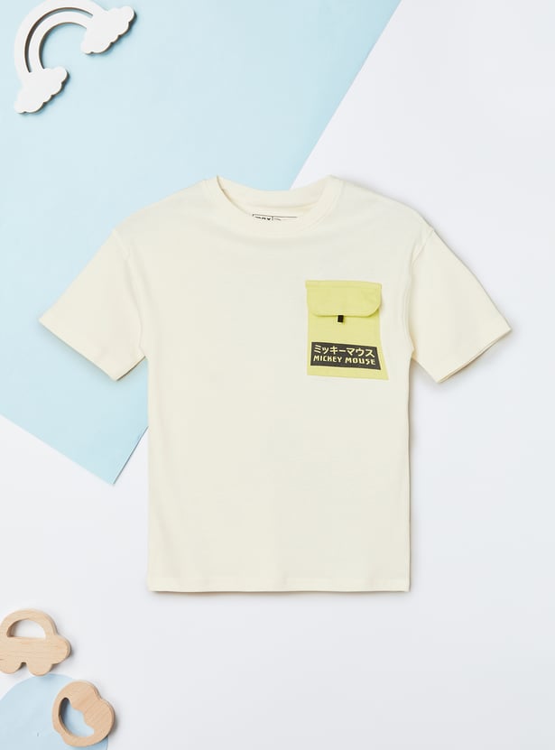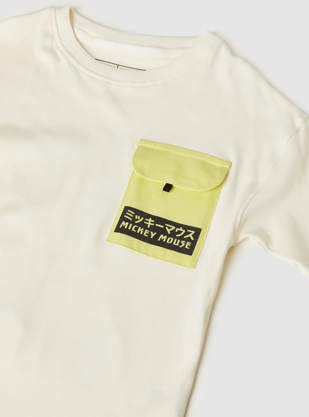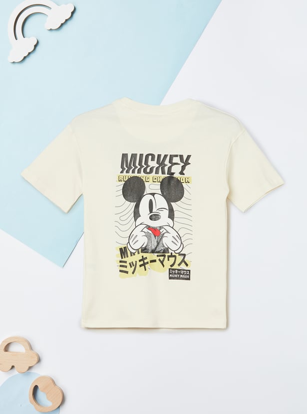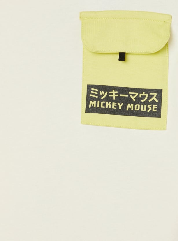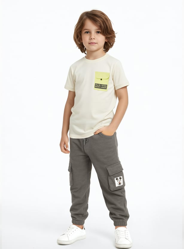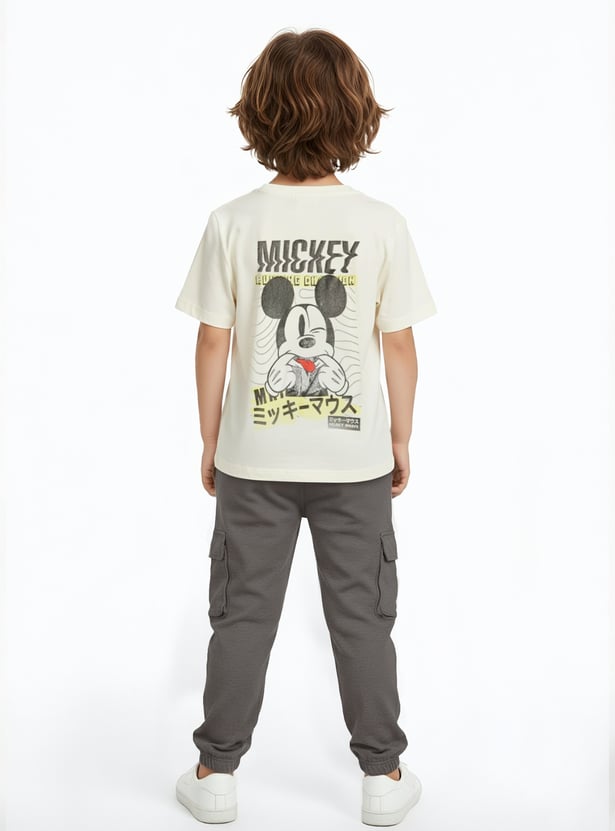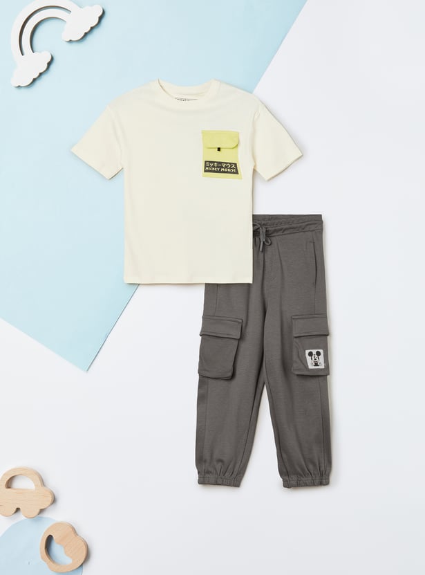Add a playful touch to your casual wear with this Mickey Mouse print joggers set. The T-shirt features a crew neck and half sleeves, paired with joggers designed with a drawstring closure and pockets for comfort and style.