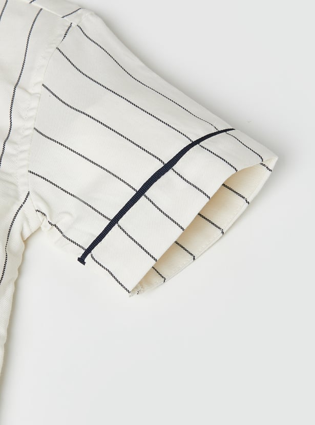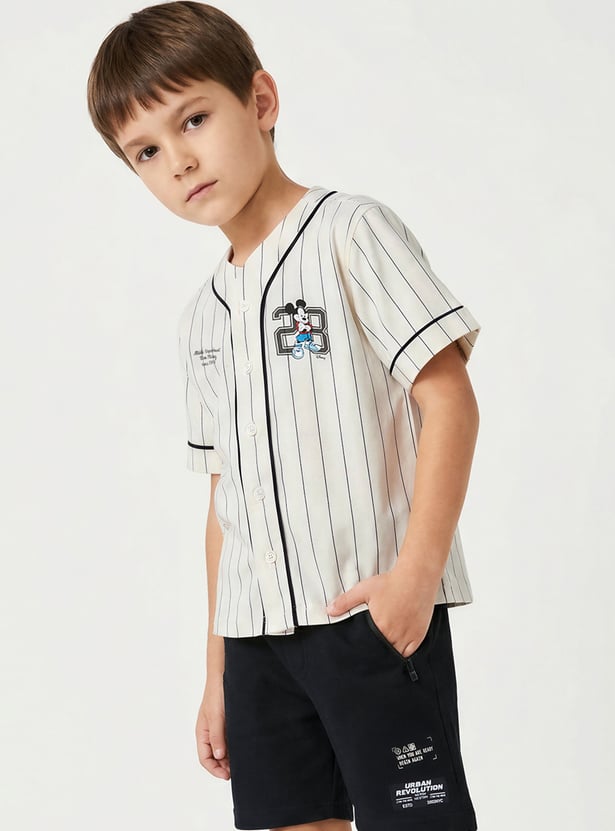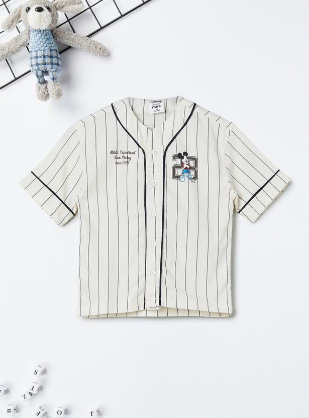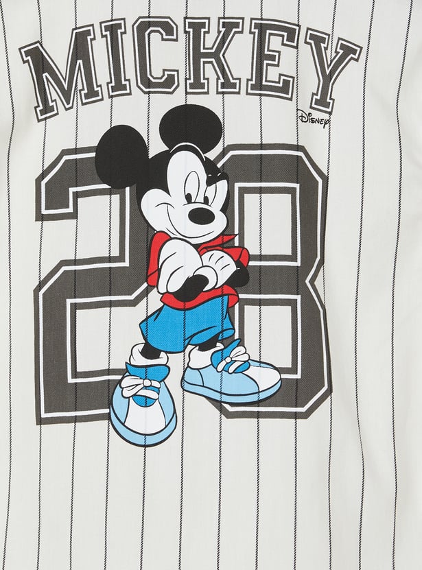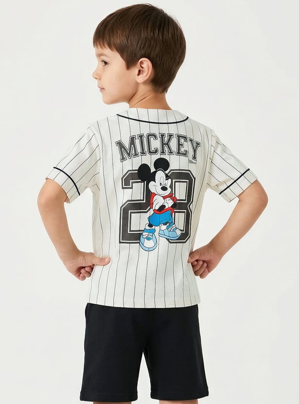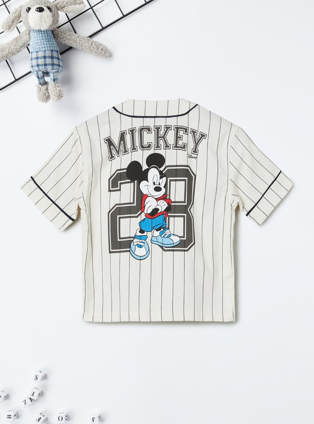 Add a playful touch to your kids wardrobe with this Mickey Mouse print shirt, featuring a classic round neck, half sleeves, and a neat button placket.