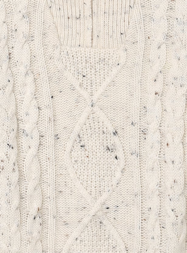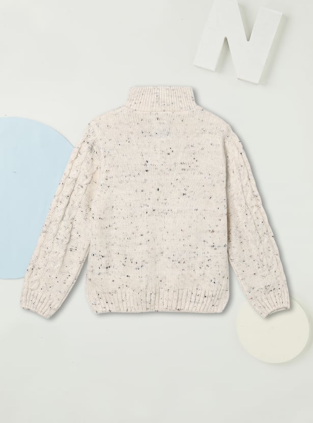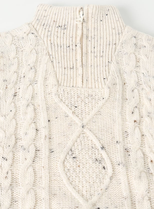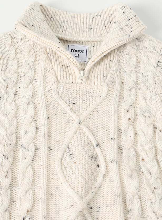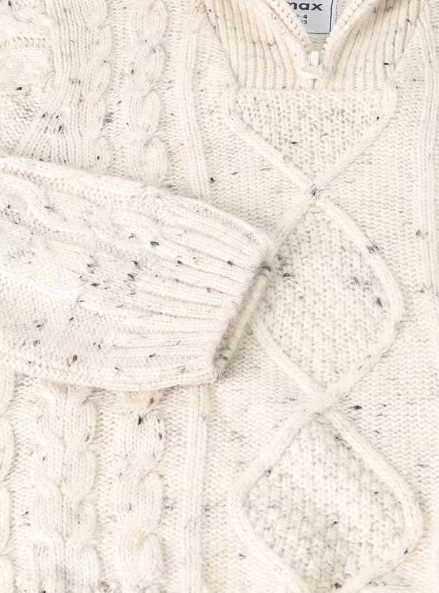 Keep him cozy and stylish in this neppy cable knit high neck sweater. Designed with a zipped neckline for easy wear, it features a classic cable knit pattern, ribbed collar, sleeves, and waist hem to ensure a snug and comfortable fit, making it perfect for chilly days.