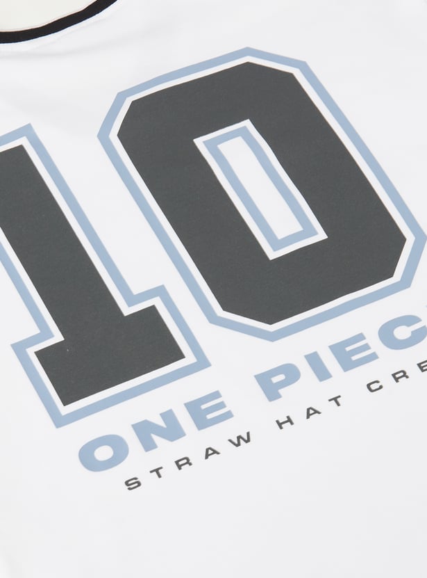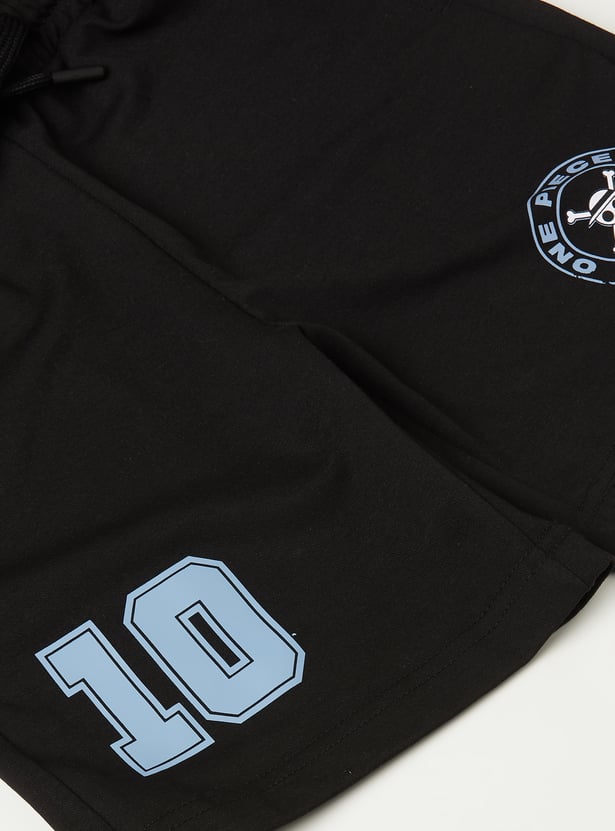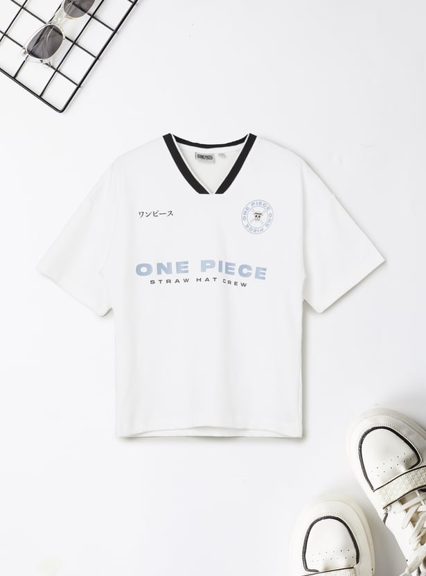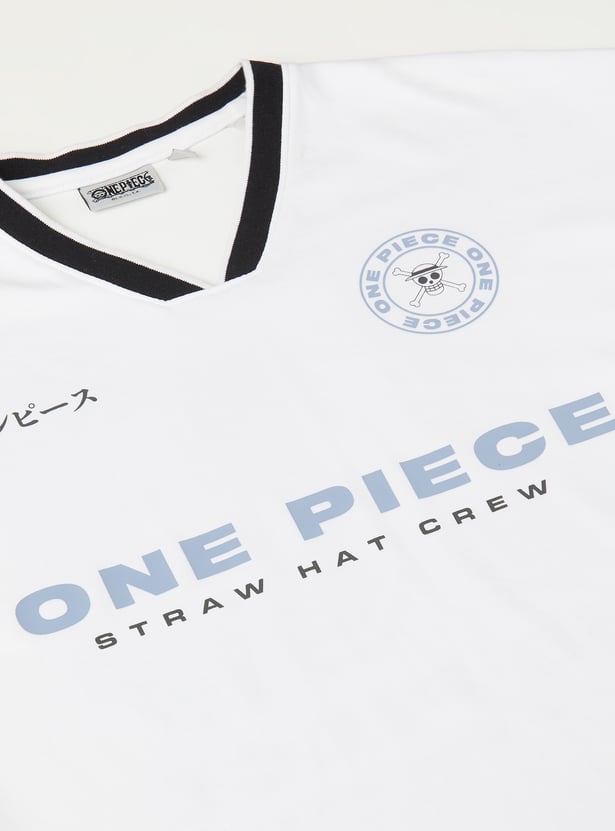 Stay cool and comfy with this One Piece print shorts set. The T-shirt features a flattering V-neck and half sleeves, while the shorts come with a drawstring closure and handy pockets for everyday ease. Together, the set blends casual style with practical comfort.