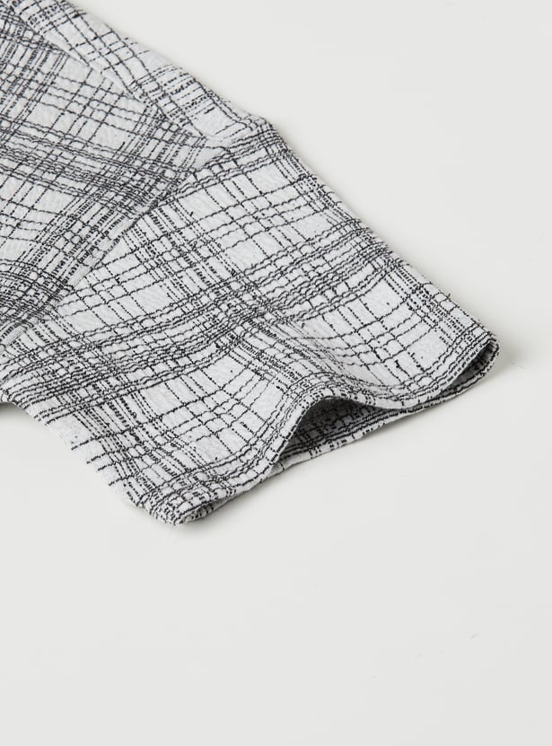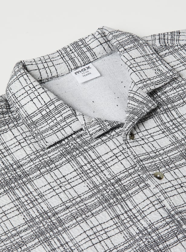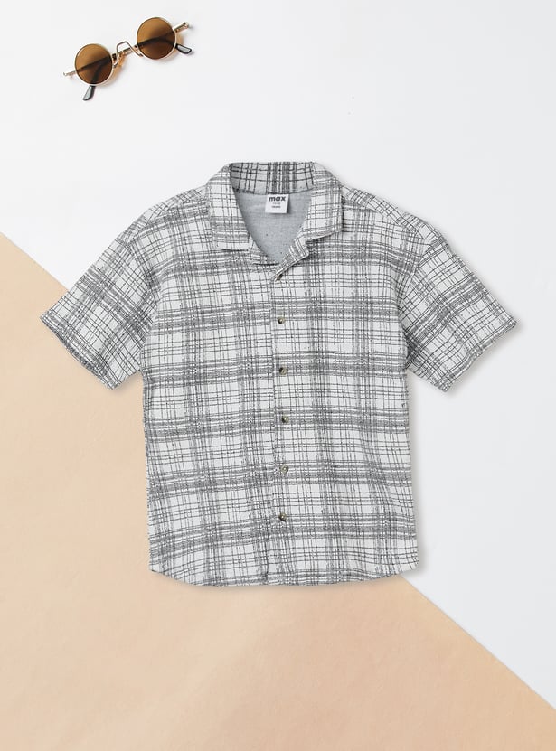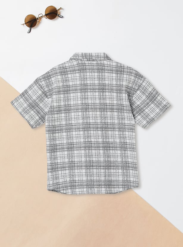Bring vacation vibes to his wardrobe with this checked resort shirt, styled with a relaxed resort collar and half sleeves for breezy comfort. The button placket adds classic structure, while the patch pocket offers everyday utility—perfect for summer outings, playdates, or casual celebrations.