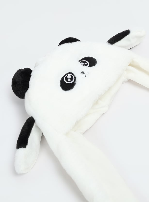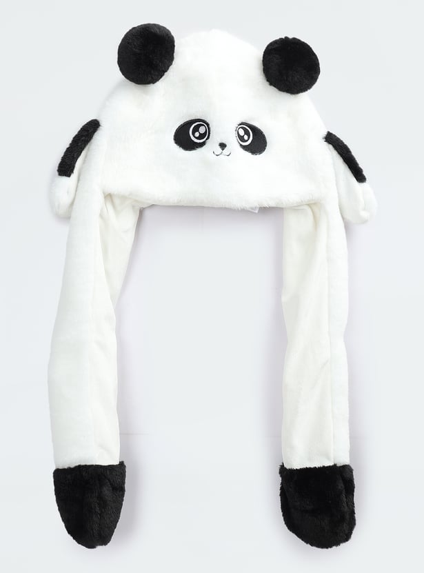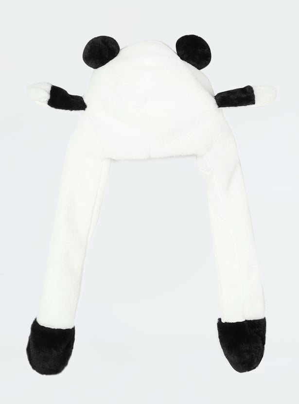 Elevate your kid's winter style with this adorable Panda Beanie, featuring two dangling flaps adorned with playful pom-poms. Perfect for keeping them warm and cosy while adding a fun, whimsical touch to their cold-weather outfits.