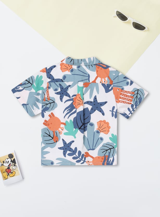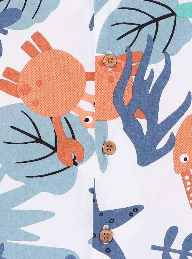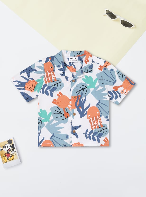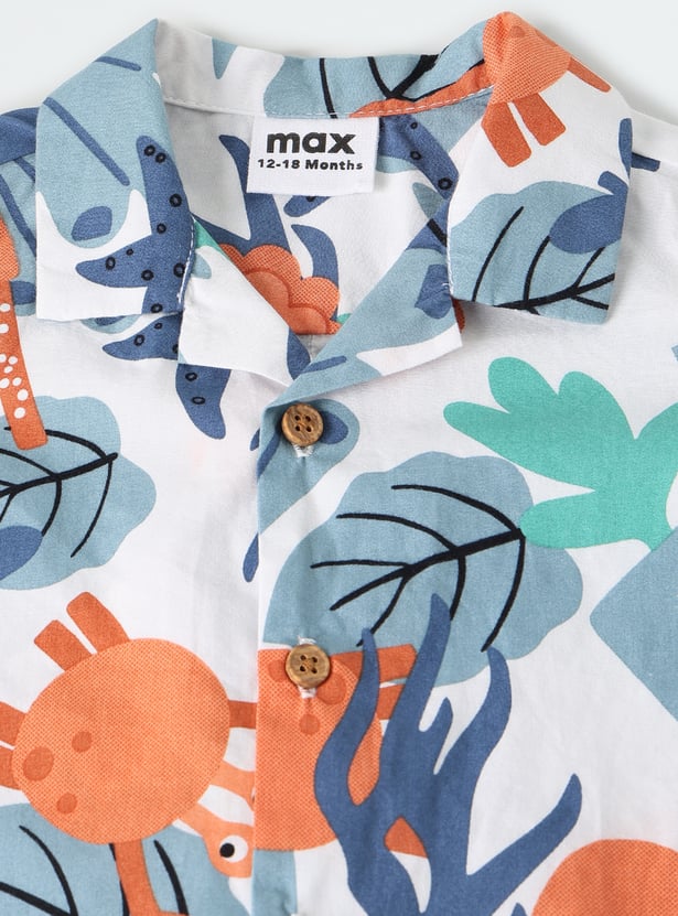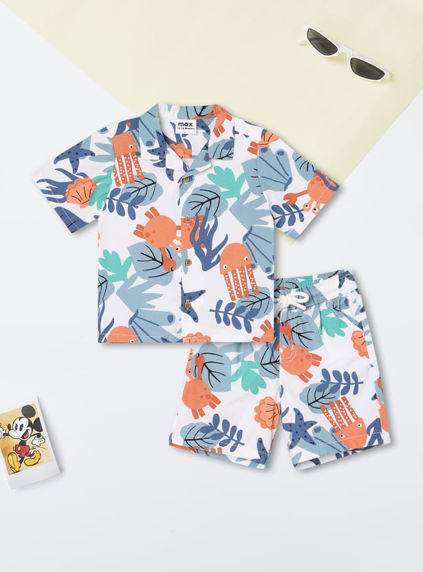 Get vacation-ready with this printed co-ord set! The resort-collar shirt with half sleeves and button closure pairs perfectly with printed shorts featuring a drawstring closure and pockets for ultimate comfort and style.