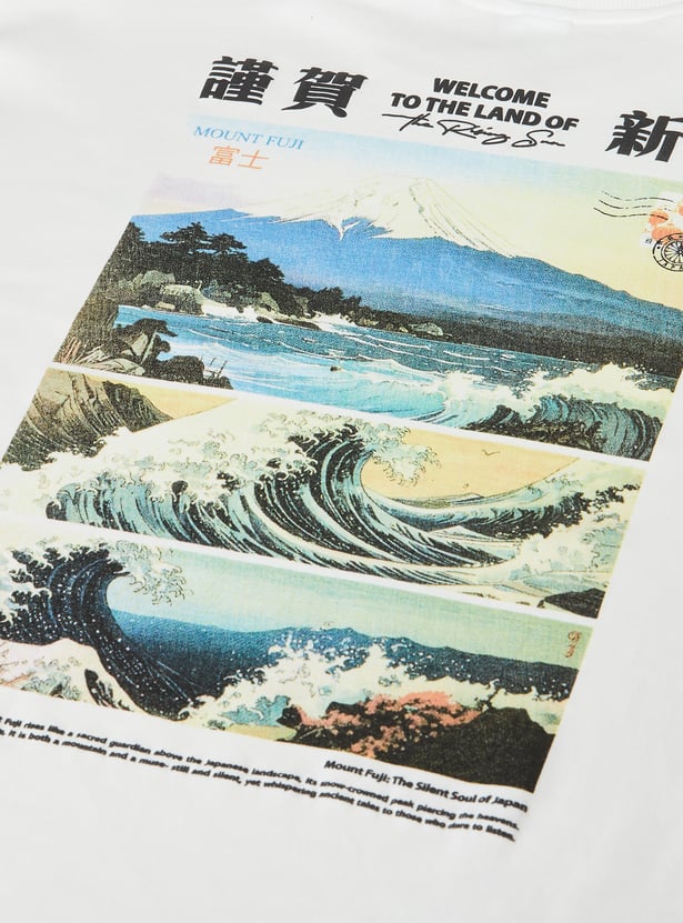 Effortless and versatile, this printed oversized T-shirt is a wardrobe staple. Designed with a classic crew neck and half sleeves, it combines everyday comfort with a touch of personality through its print.