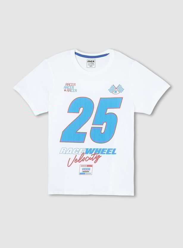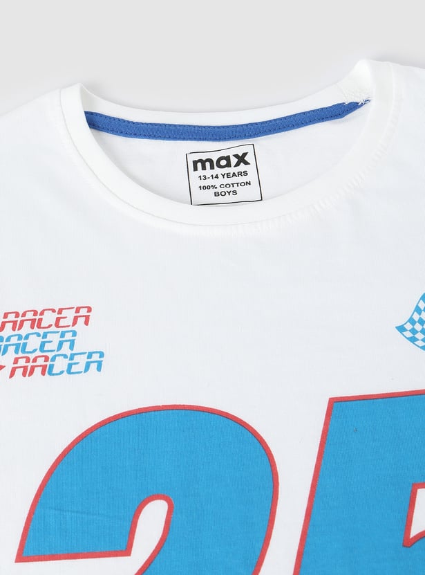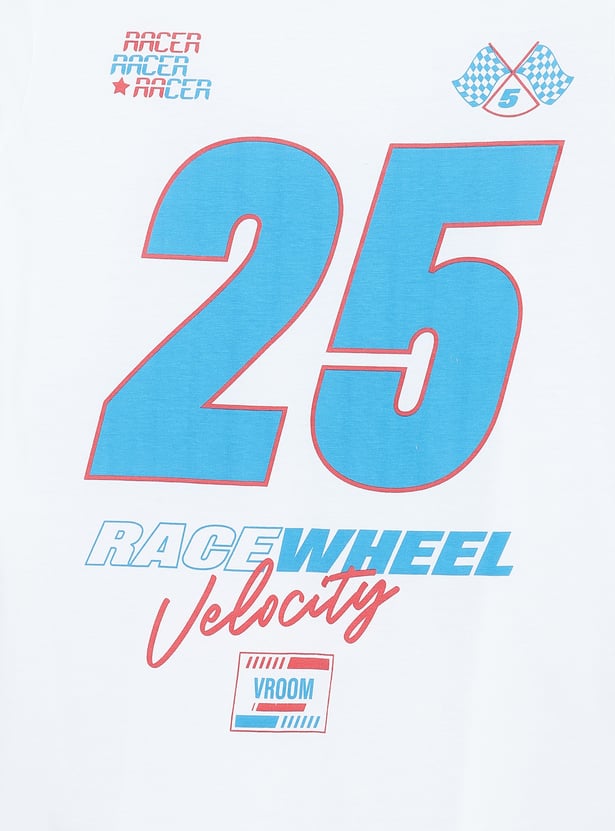 Get your kid ready for action with this T-shirt. Styled with a typographic print, crew neck, and half sleeves, it's perfect for combining fun and function.